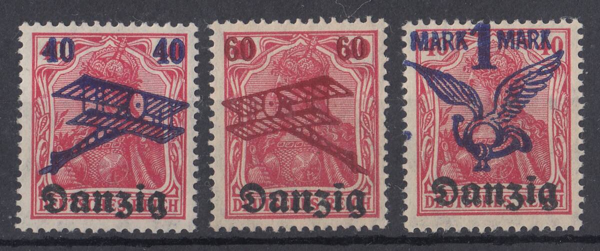 1920年自由都市ダンツィヒ ゲルマニア加刷航空郵便切手 3種