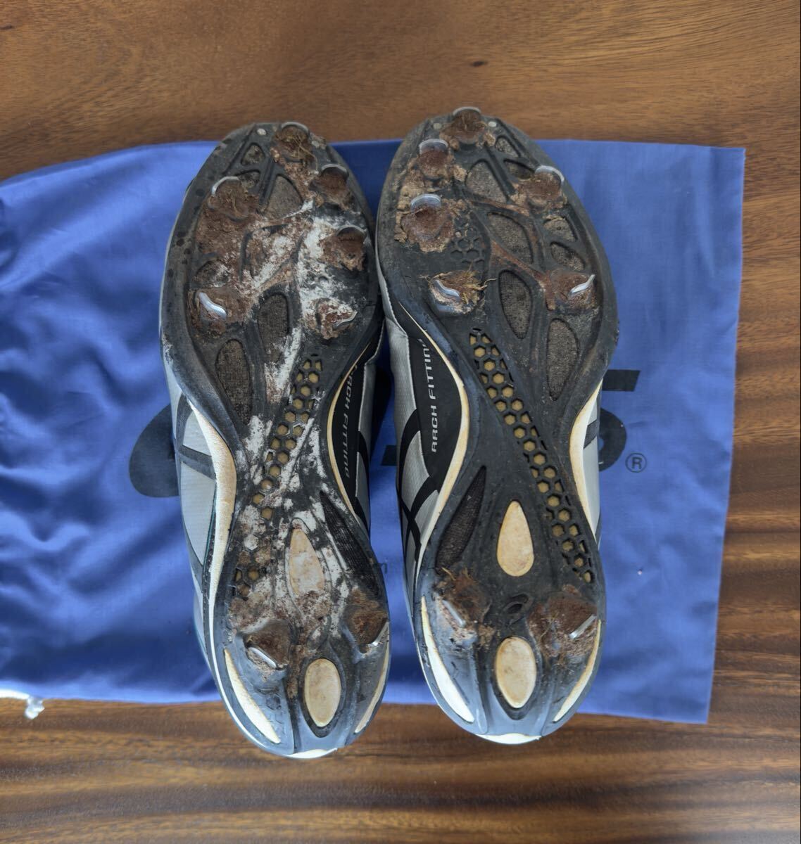 右かかとの部分にはホームプレート型のイチローホログラムが付いています。