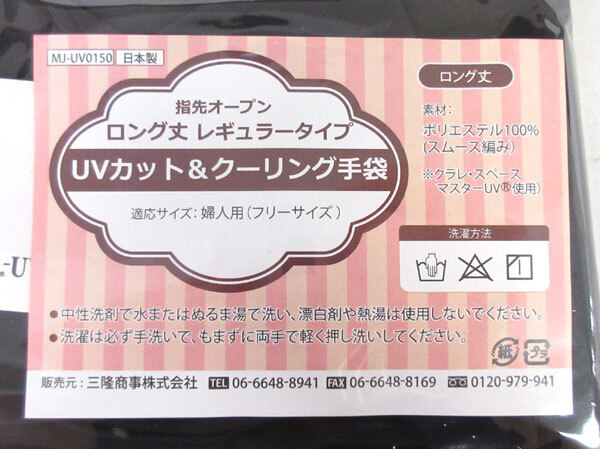 ▼UVカット&クーリング手袋 ロング レギュラータイプ(MJ-UV0150) 3点 | |