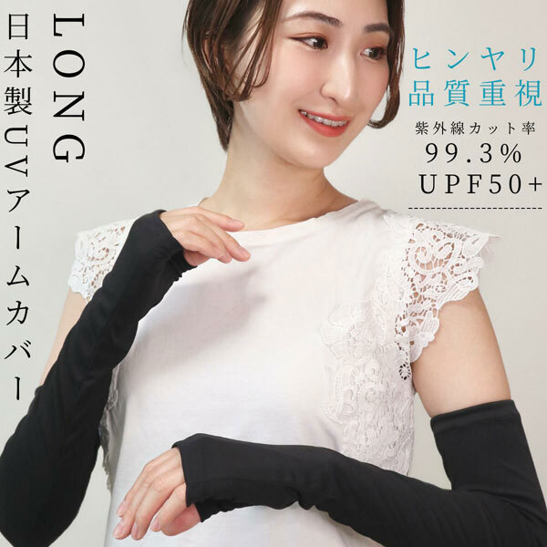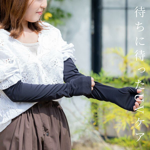 内 容 | ■レディース UVカット&クーリング手袋 指先オープン ロング丈 レギュラータイプ(MJ-UV0150) ■サイズ:フリー(約全長54cm) ■カラー:ブラック ■SPF50+(UVカット率99.3%以上) ■日本製 指なしタイプなのでスマートフォンの操作が可能な UVカットアームカバーロング丈ブラックです。 ロングなのでノースリーブのお洋服や 半そでのお洋服の時にも しっかり腕を紫外線から守ってくれます。 脱ぎ着の調節も楽々です。 自転車、自動車の運転などからも 腕を紫外線から守ります。 |