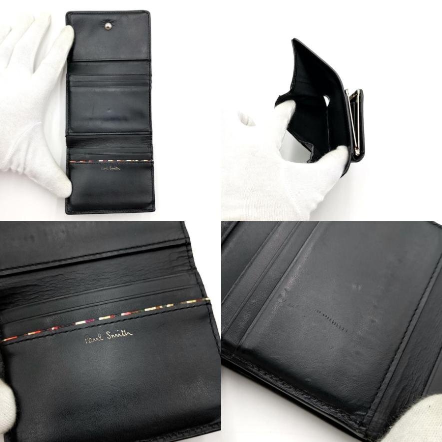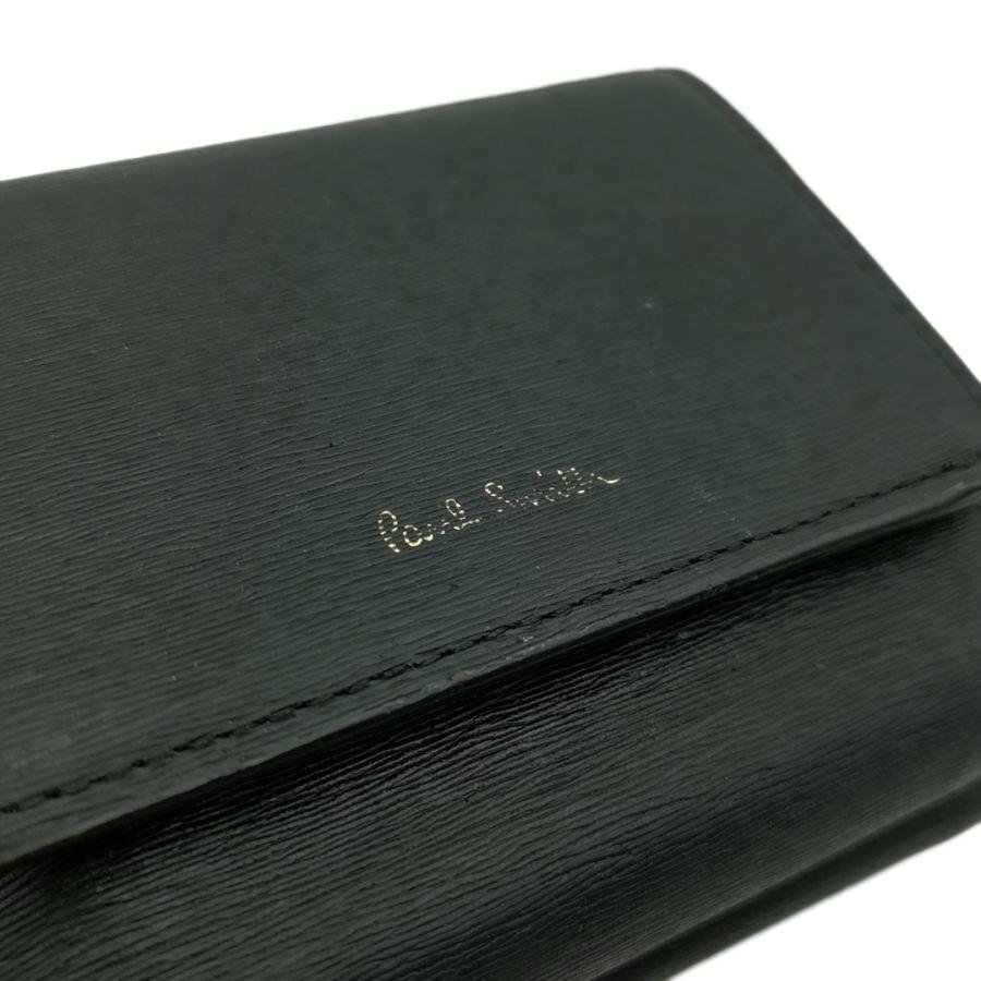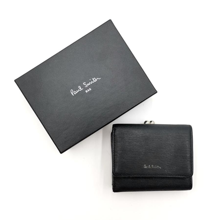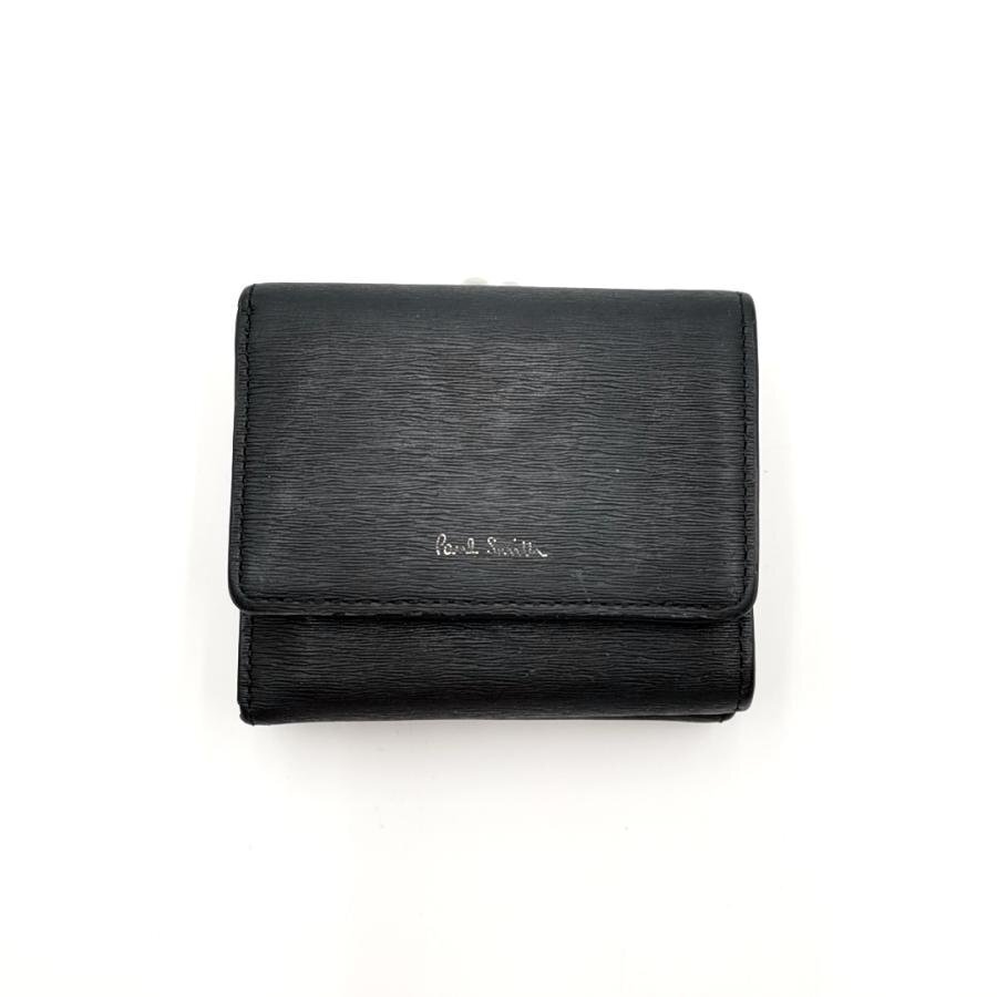 送料無料 ポールスミス Paul Smith 財布 三つ折り ミニ財布 がま口 PWD824 レザー 黒 ブラック系 メンズ