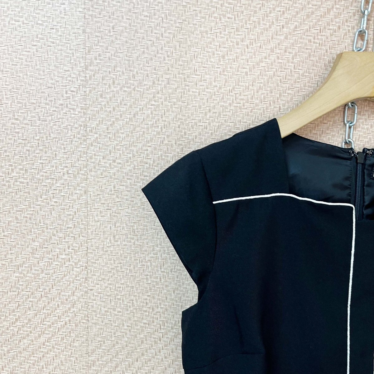 フロントに施されたホワイトラインのデザインが立体感を演出する、人気のミディ丈ワンピースです。ウエスト部分には程よいタック入りで、自然に体のラインを美しく見せるスリムシルエットが魅力です。やや長めのミディ丈で落ち着きがあり、ジャケットとの相性も抜群。一枚を着るだけで、オシャレを1歩リードするコーデのアクセントになります。