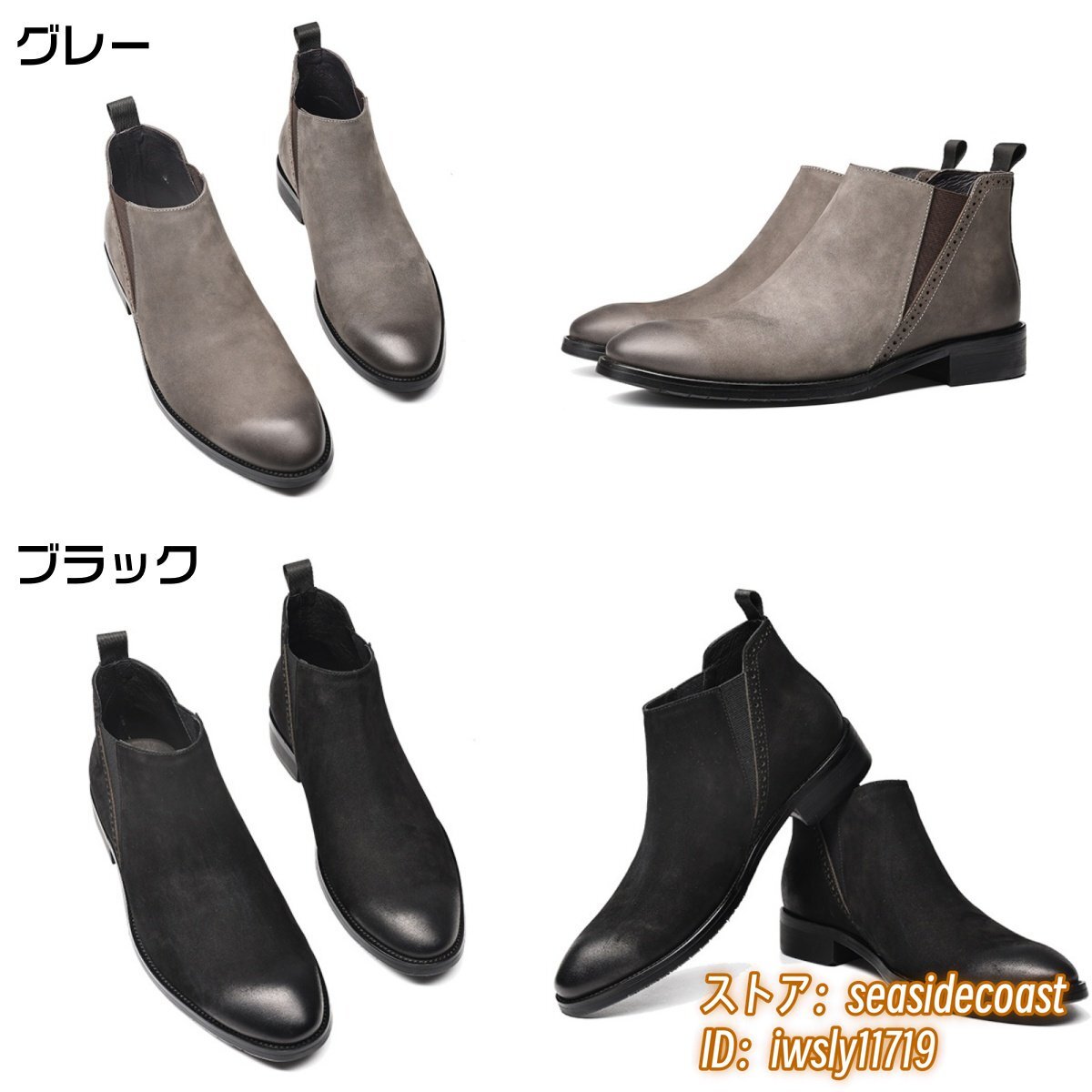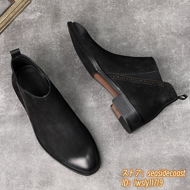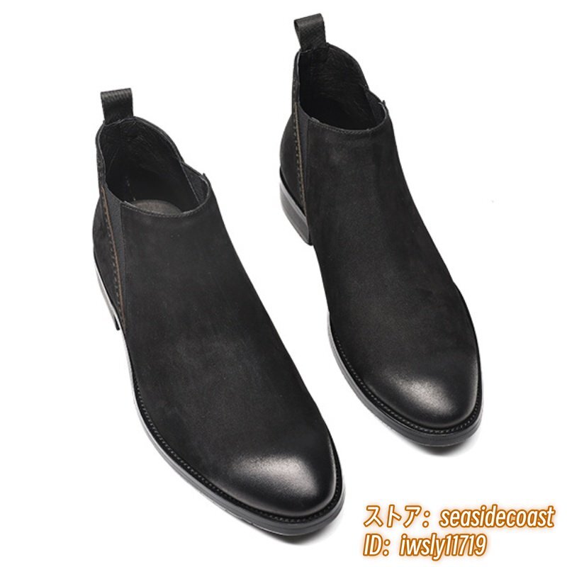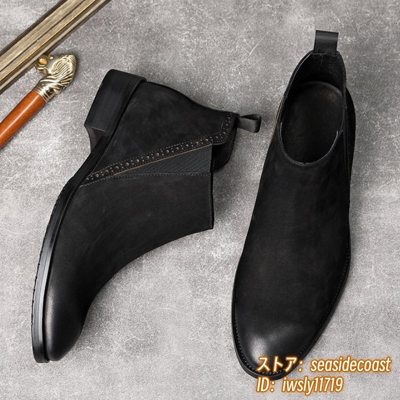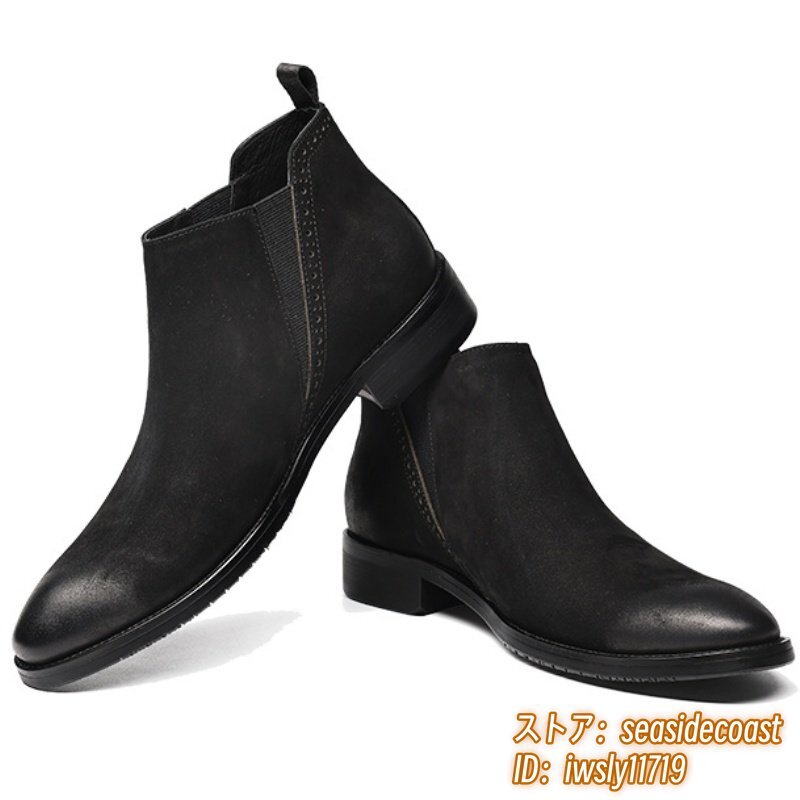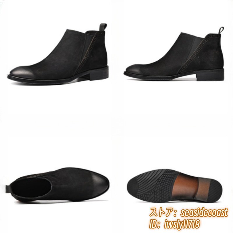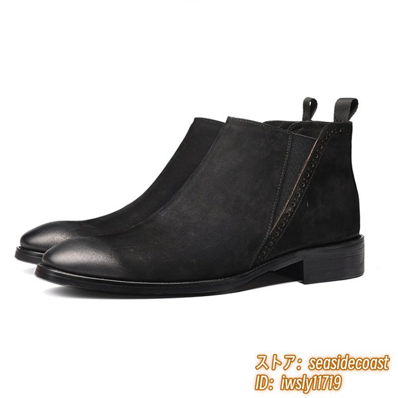 極美品★ショートブーツ 超希少 職人手作り メンズブーツ イギリス風 ビジネスシューズ 本革 レザーシューズ 紳士靴 革靴 ブラック 24.5cm
