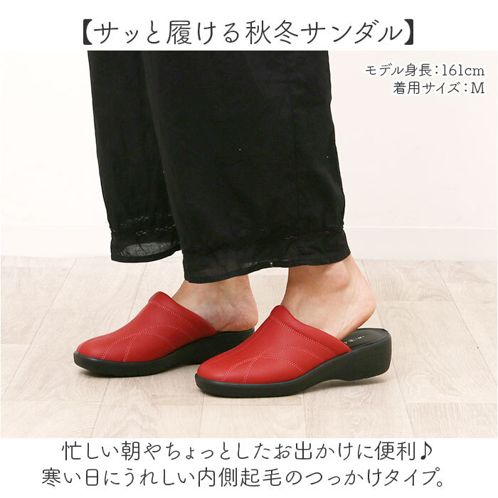| 商品説明 | ・・【サッと履ける秋冬サンダル】 ・忙しい朝やちょっとしたお出かけに便利♪寒い日にうれしい内側起毛のつっかけタイプ。 ・【ひやっと感軽減】 ・内側の甲周りから指先まで起毛パイル地を使用しているので、底冷えする日も安心。 ・【軽やかな履き心地】 ・片足約190gの軽さで長時間履いても疲れない◎※Mサイズの片足分の重量です ・【快適な歩き心地】 ・耐摩耗性に優れたPUソールを採用。優れたグリップ力で安心感のある設計。 |