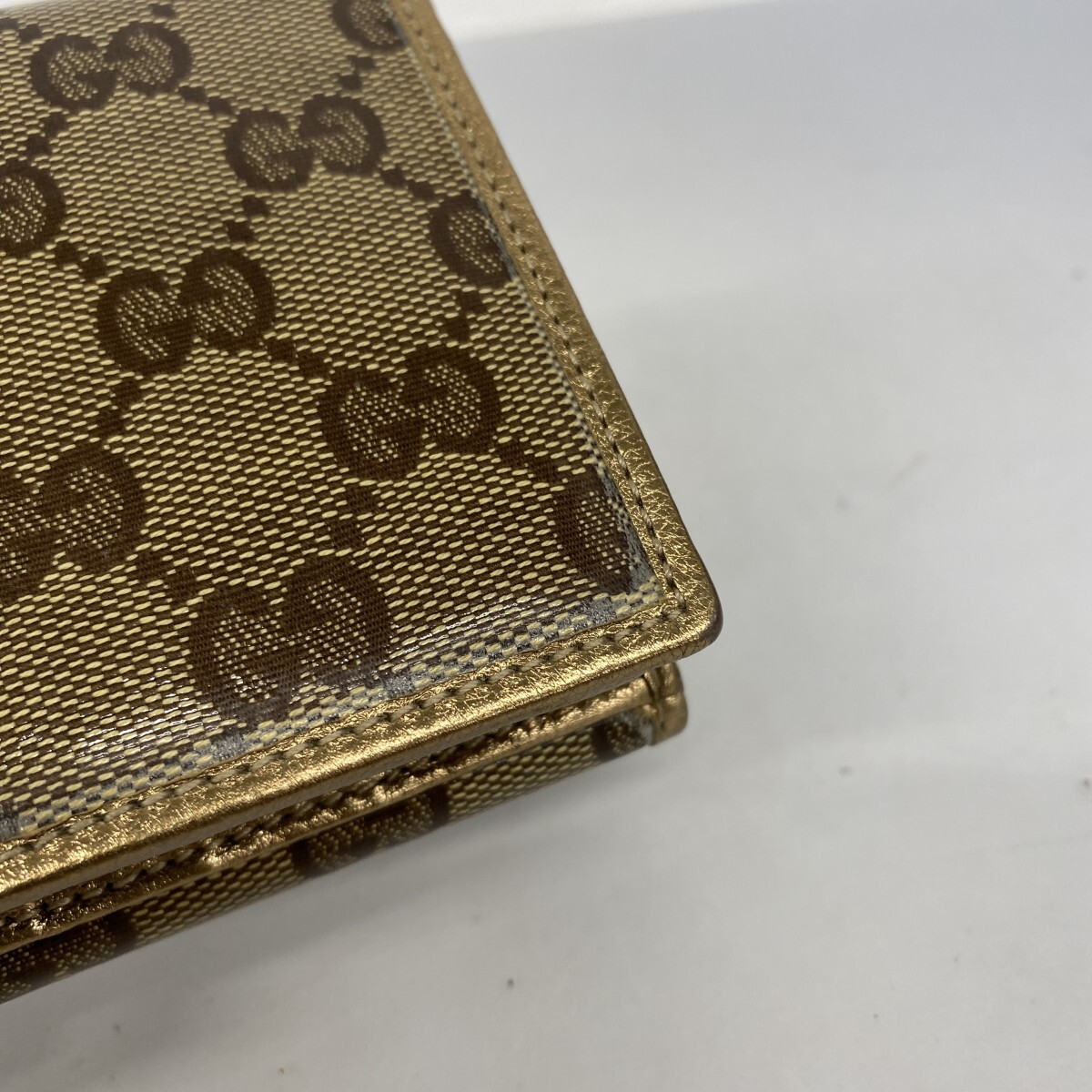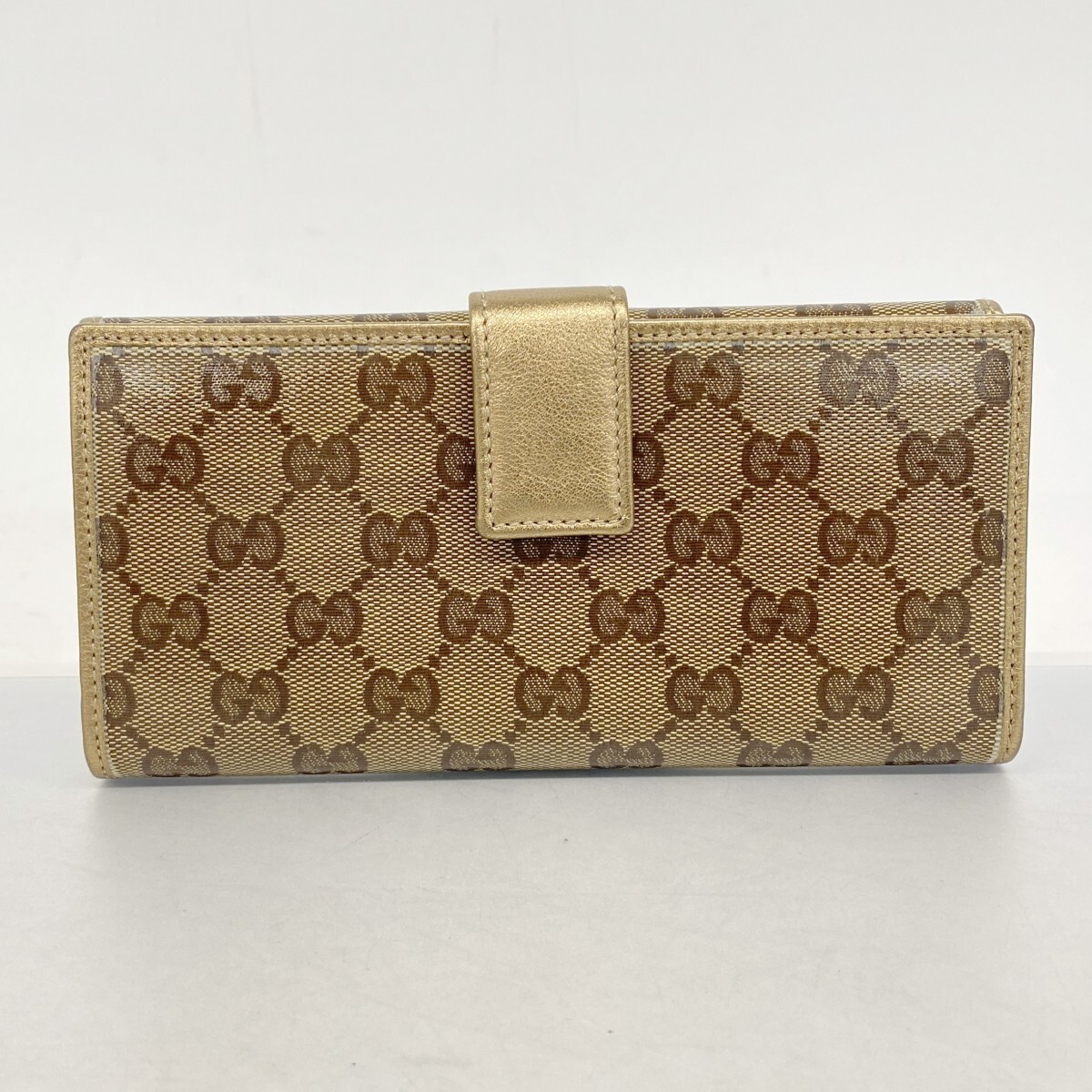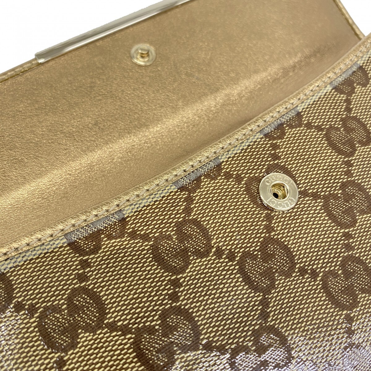 【5id5135】グッチ 長財布 GGクリスタル 112715 コーティングキャンバス ブラウン シャンパンゴールド金具【中古】レディース