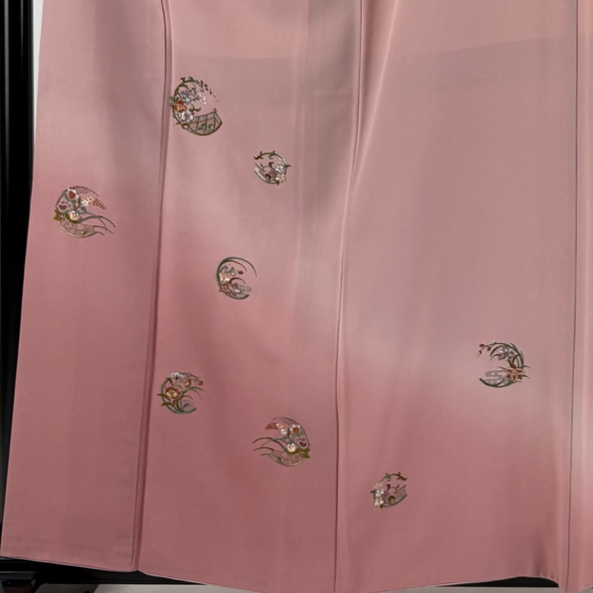 | 付下げ 秀品 花丸文 金銀糸 刺繍 ピンク 袷 身丈159.5 裄丈63.5 S 正絹 【中古】 |