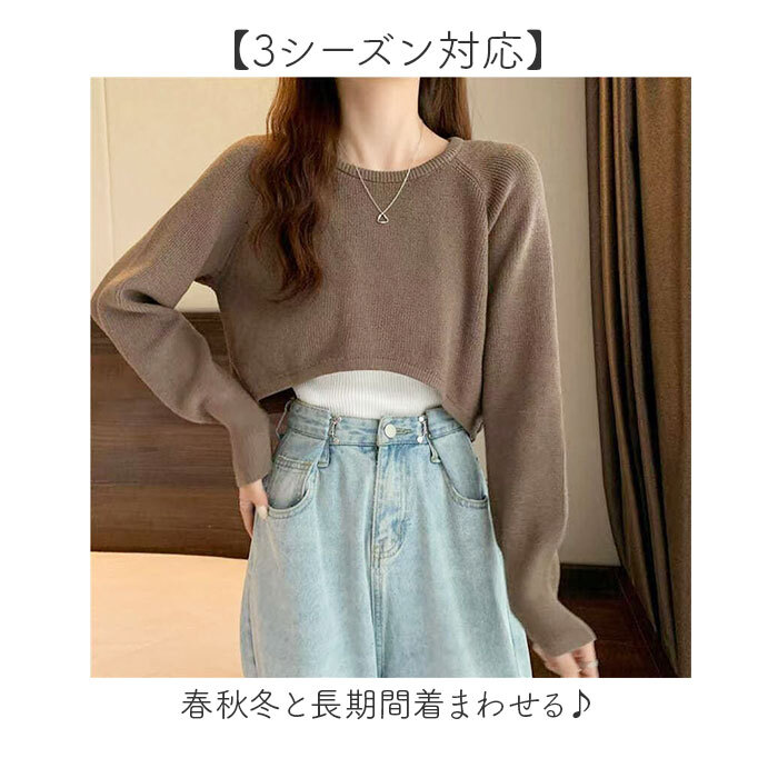 商品説明 | ・・【スタイルアップ抜群トップス】 ・クロップド丈でウエストラインを美しく見せるシルエット◎ ・【着回し力抜群デザイン】 ・パンツやスカートなどボトムスを選ばず着こなせる万能アイテム! ・【快適な着心地】 ・伸縮性のある素材で動きやすくストレスフリーな着用感〇 ・【3シーズン対応】 ・春秋冬と長期間着まわせる♪ |