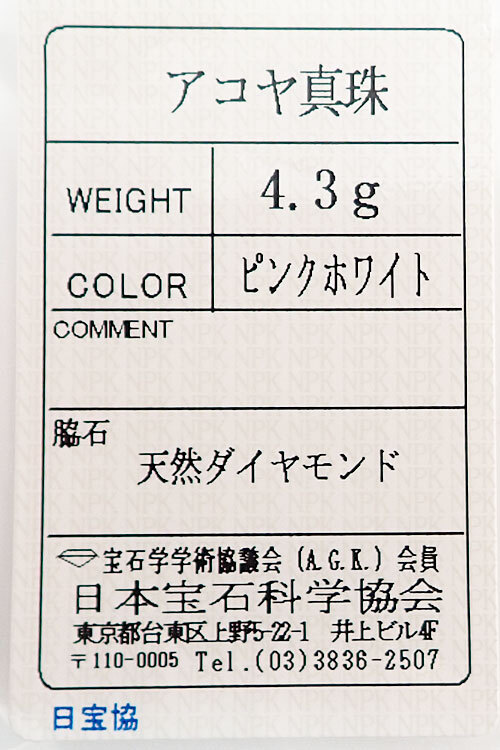 アコヤ真珠色:ピンクを帯びたクリームホワイトの色合い
