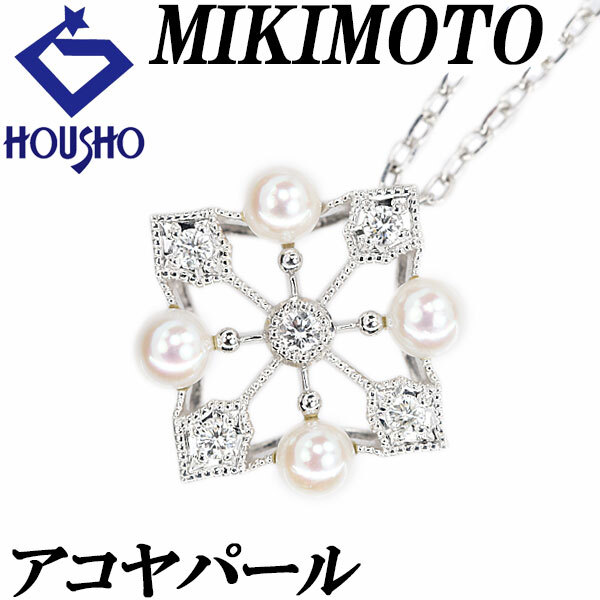商品名ミキモト アコヤ真珠 ネックレス ダイヤモンド K18ホワイトゴールド MIKIMOTO ベビーパール 透かし ミル打ち ミルグレイン