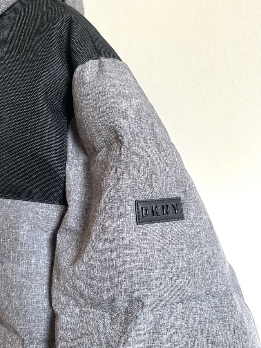 DKNYのフーディダウン。モノトーンのバイカラーです。