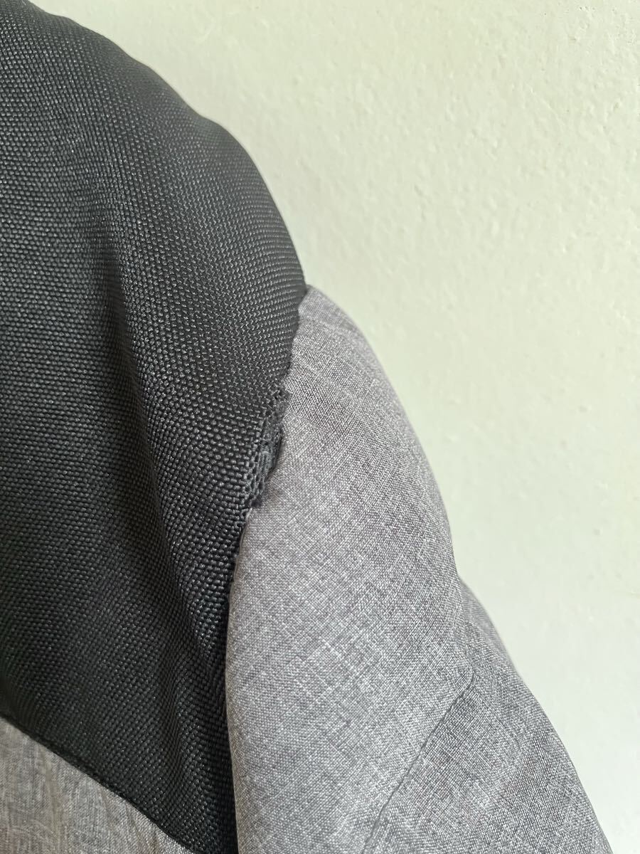 画像のように右肩後ろに2cmほどのほつれがあります。中のダウンパックは無傷なのでここから羽根が出てくることはないです。
