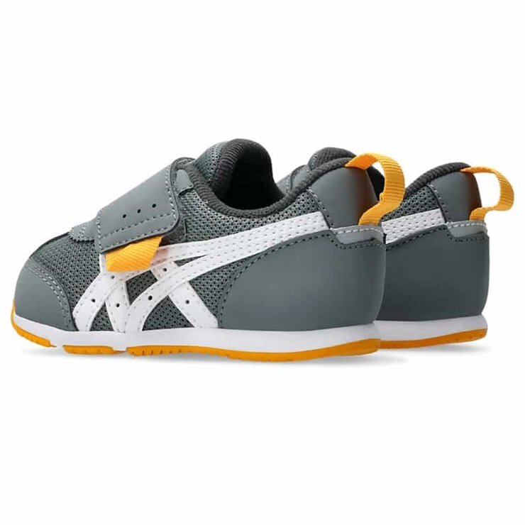 約1歳から3歳の幼児向けに展開する「BABY」シリーズのローカットシューズ。 扇形のつま先部分は足ゆびをのびのびと動かすことができ、踏ん張りやすいのが特徴です。 アウターソールは、足の屈曲位置に合わせて溝を配置した「フレックスグルーヴ」を採用。 足の動きにしなやかに追従します。かかとの安定性を重視し、かかとを包み込む立体的なインナーソールを使用しています。 インナーソールの表面材には抗菌・消臭効果のあるシャインアップと、汗をすばやく吸収・拡散してドライ感を保つウォーターマジックを採用。靴の中を快適に保ちます。 甲の内側を1枚の布で包み込むような構造のキモノフィットタンにより、フィット感を高め、アーチ部の倒れ込みを抑えます。 アッパーは通気性に優れたラッセルメッシュを使用。 街灯や車のライトなどの光を反射する再帰反射材(リフレクター)をかかと部に配置しています。 |
