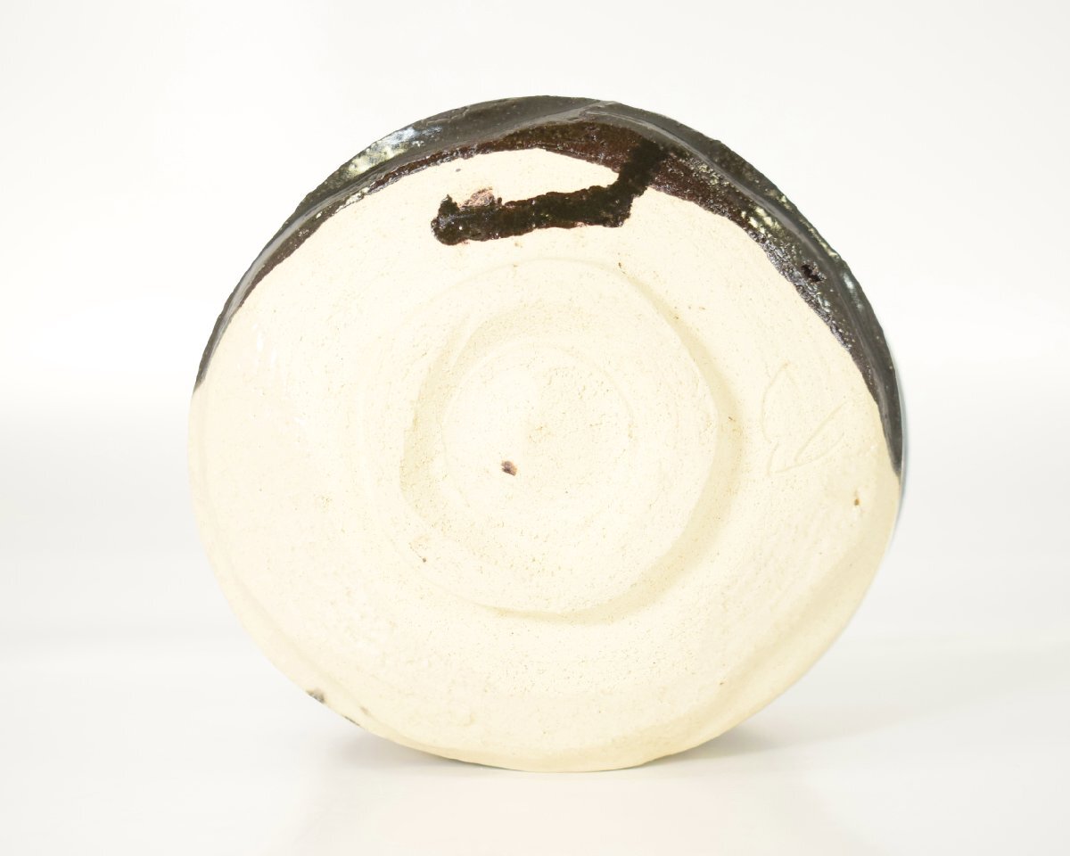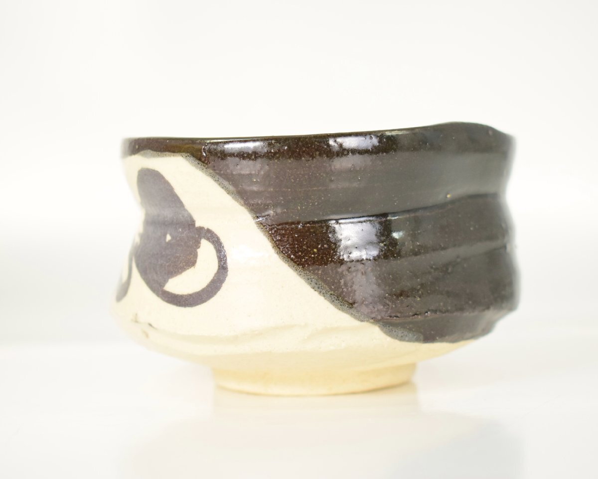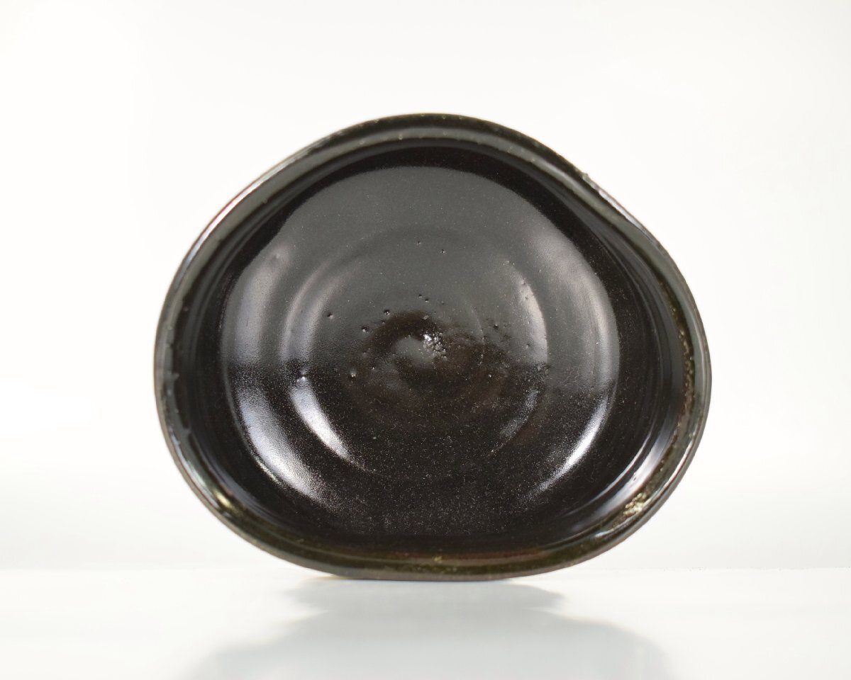 しっとりとした黒織部の表面に抽象文様が描かれた、シックなお品です。
