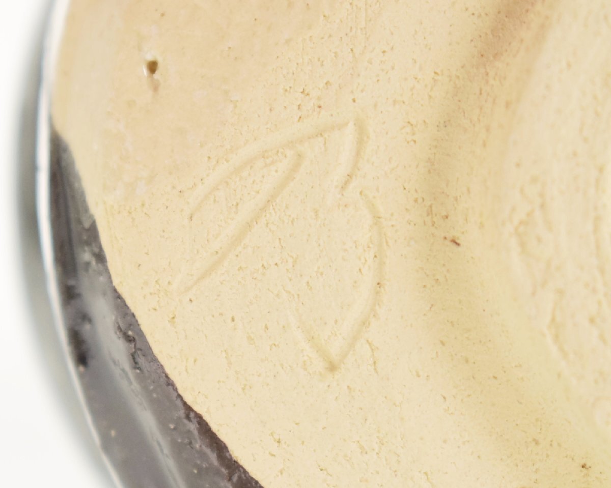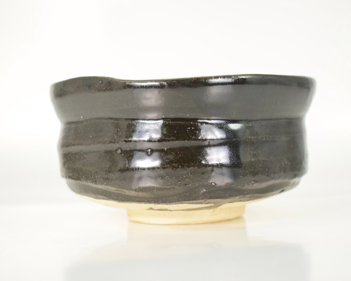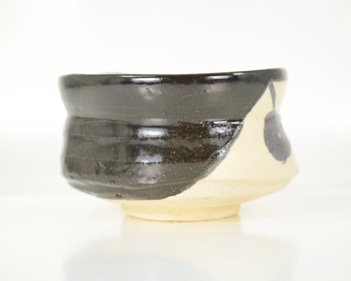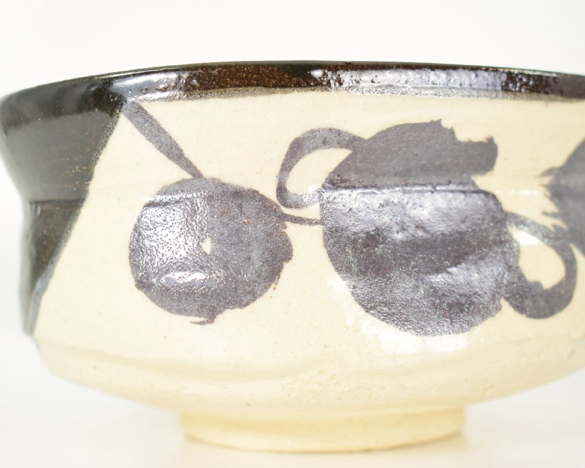 しっとりとした黒織部の表面に抽象文様が描かれた、シックなお品です。