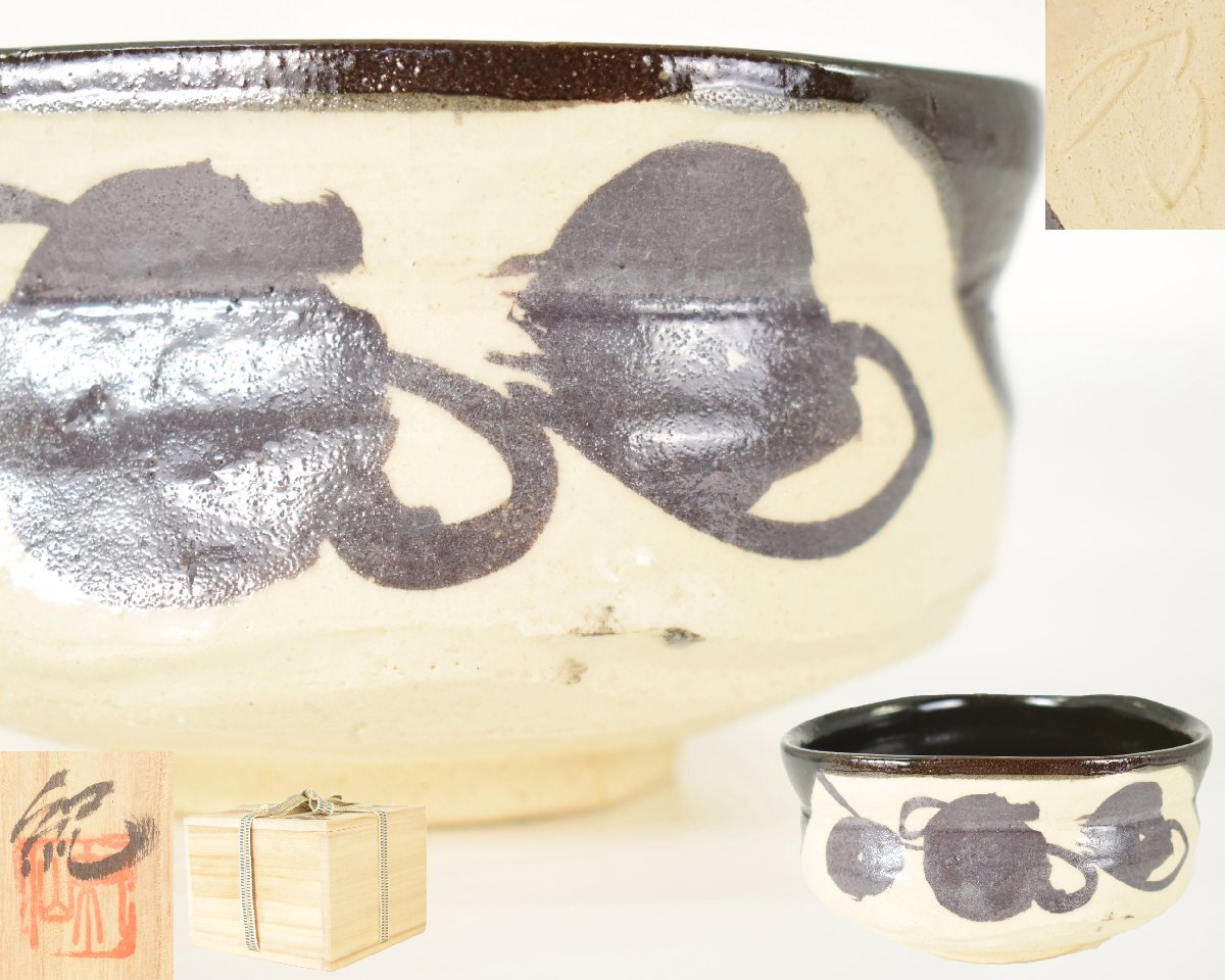 X930 【泉美】昌山窯 今井紀明作 黒織部 茶碗 抹茶碗 茶道具 共箱入