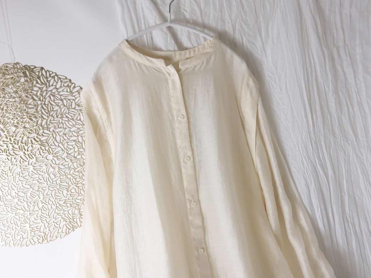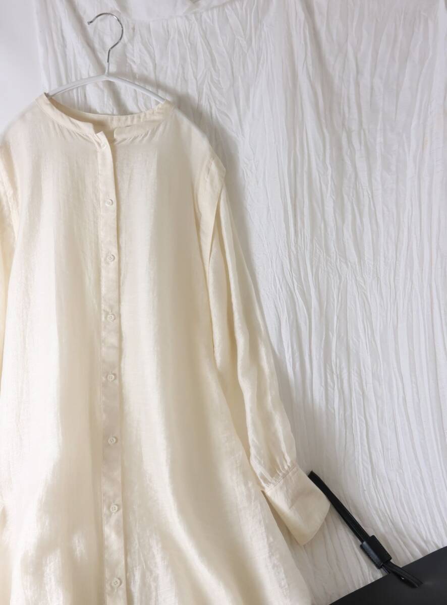 フロントと袖口ボタン開閉。両サイド裾スリット入り。