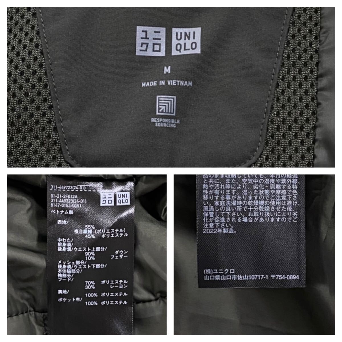 【UNIQLO(ユニクロ)ハイブリッドダウンパーカ ダウンジャケット メンズM カーキ系 W13】