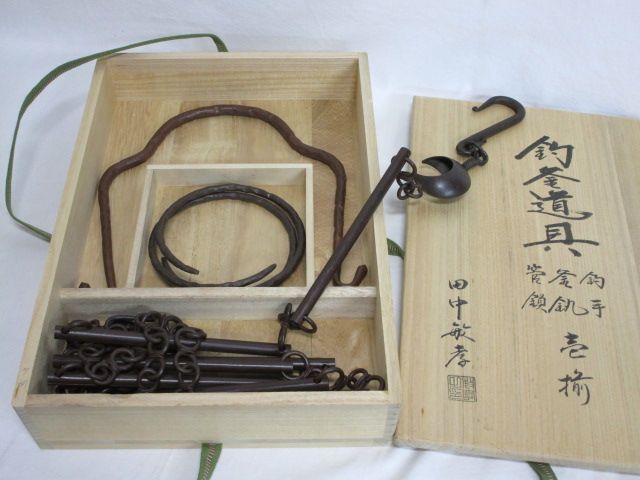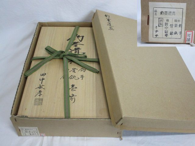 釣手 縦:20.8cm 横(幅):21.3cm 釜金丸 直径:11.5cm 管鎖 全長:約248.0cm程 共箱・ダンボール箱あり。 ※若干サイズに誤差はありますので、ご了承ください。 ★★うぶ品★★につき 低価格にてスタートさせていただきます。 ご入札よろしくお願い致します! L07-0614 |