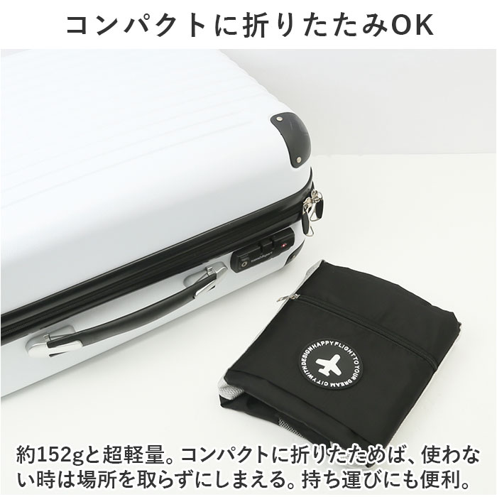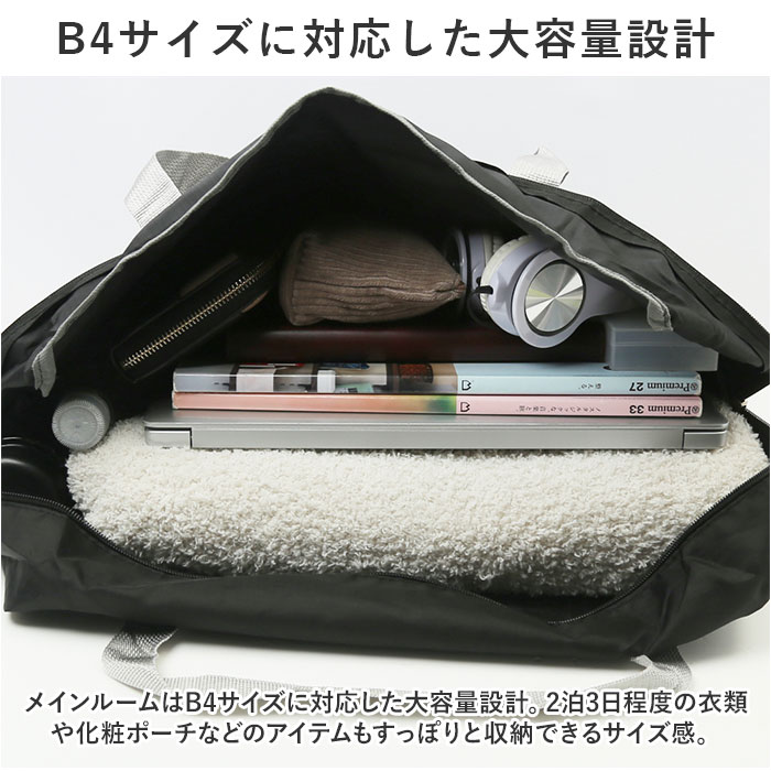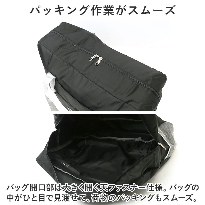商品説明 | ・・超軽量&大容量で買い物や旅行のサブバッグとしても便利に使えるトラベルバッグの登場! ・【B4サイズに対応した大容量設計】 ・メインルームはB4サイズに対応した大容量設計。2泊3日程度の衣類や化粧ポーチなどのアイテムもすっぽりと収納できるサイズ感。 ・【コンパクトに折りたたみOK】 ・約152gと超軽量。コンパクトに折りたためば、使わない時は場所を取らずにしまえる。持ち運びにも便利。 ・【パッキング作業がスムーズ】 ・バッグ開口部は大きく開く天ファスナー仕様。バッグの中がひと目で見渡せて、荷物のパッキングもスムーズ。 ・【キャリーオン機能搭載】 ・バッグ背面のファスナーポケット部分は、スーツケースのハンドルにスマートにセットできる、キャリーオンベルトとしても使用可能。 ・【いろいろな物を◎】 ・スポーツ用品やアウトドア用品を入れたり、ランドリー収納、衣類の整理、防災備蓄品の収納、寝具の収納などいろいろな物を収納可能。使えるシーンは無限大! ・【多彩なシーンでお洒落に】 ・旅行用だけでなくフィットネスジム用、荷物が多めになりがちな子育て中の方用のママバッグなど、様々なシーンで大活躍。 ・【ユニセックスで使える】 ・性別年齢を問わずに使えるデザインなので、1つあると便利!ファミリーで共有して使うのもGOOD。 ・【ポケット仕様】 ・フロント:ファスナーポケットX1 ・サイド:メッシュオープンポケットX2 |