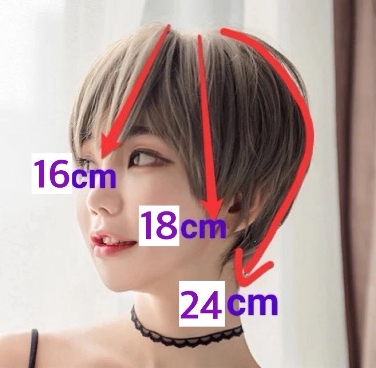 前髪:約16cm 、横髪:約18cm、後髪:約24cm