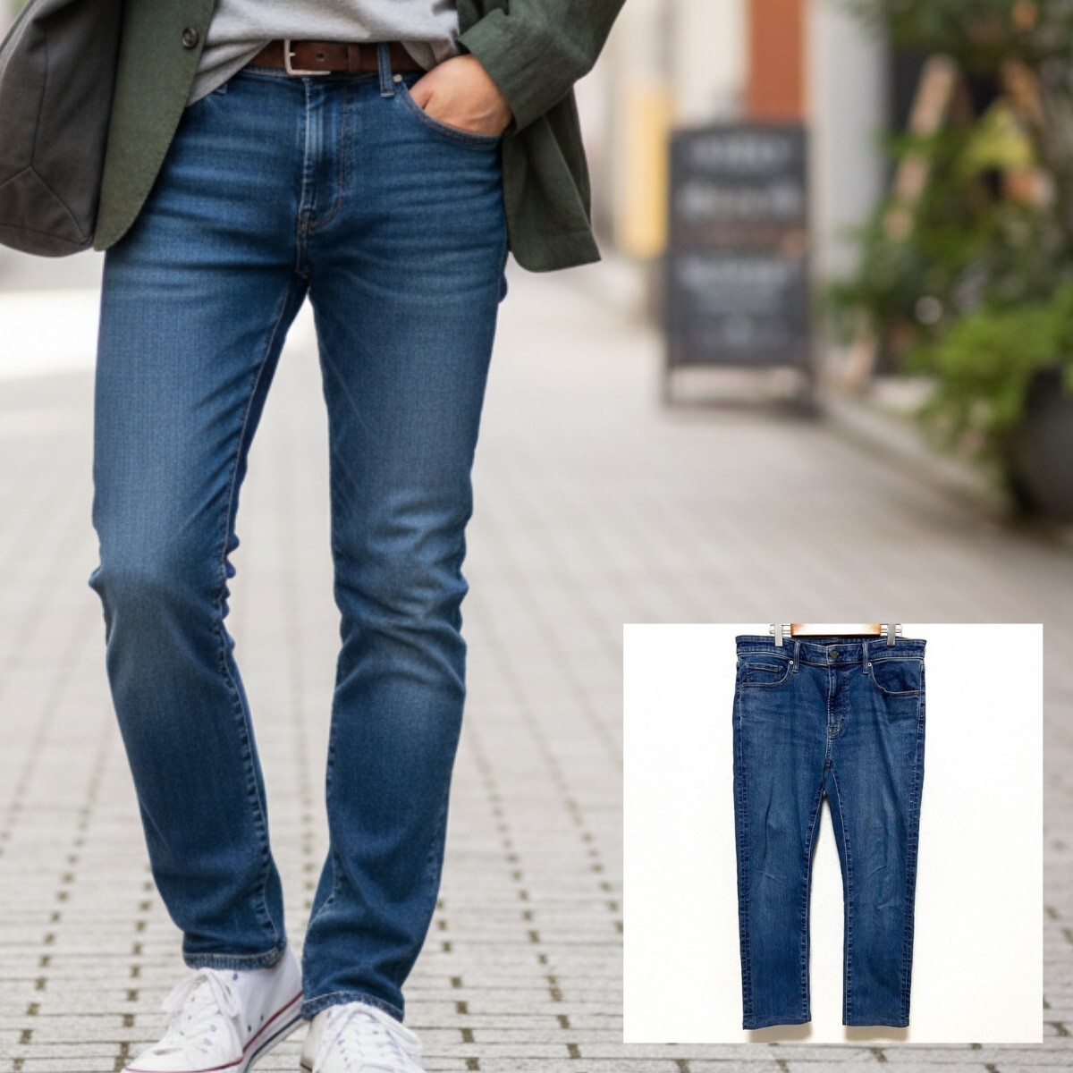 高いストレッチ性をいかし、足元までしっかりスキニーフィットで、すっきり決まるデニムパンツ。日常使いに、大活躍するアイテムです。