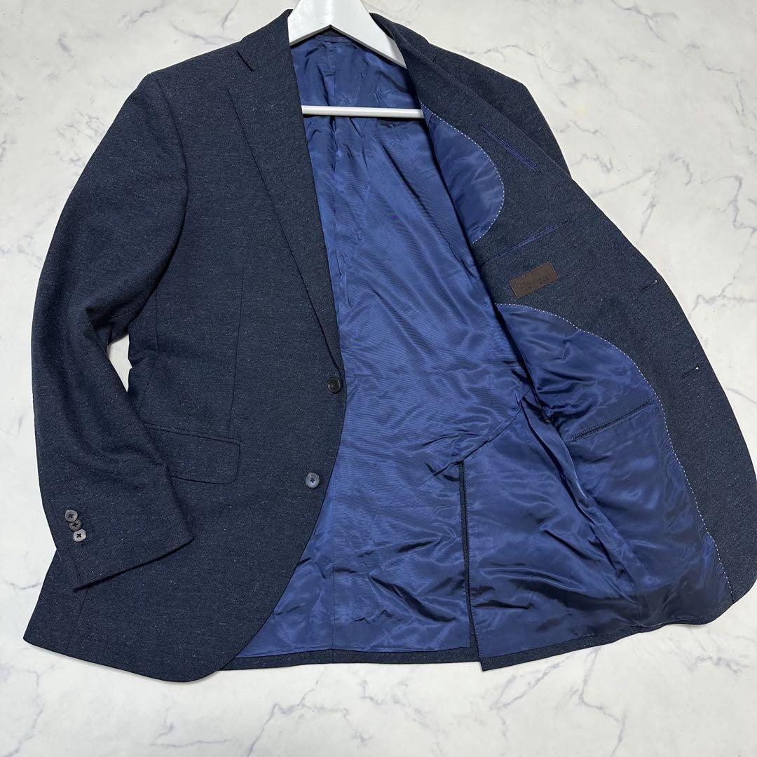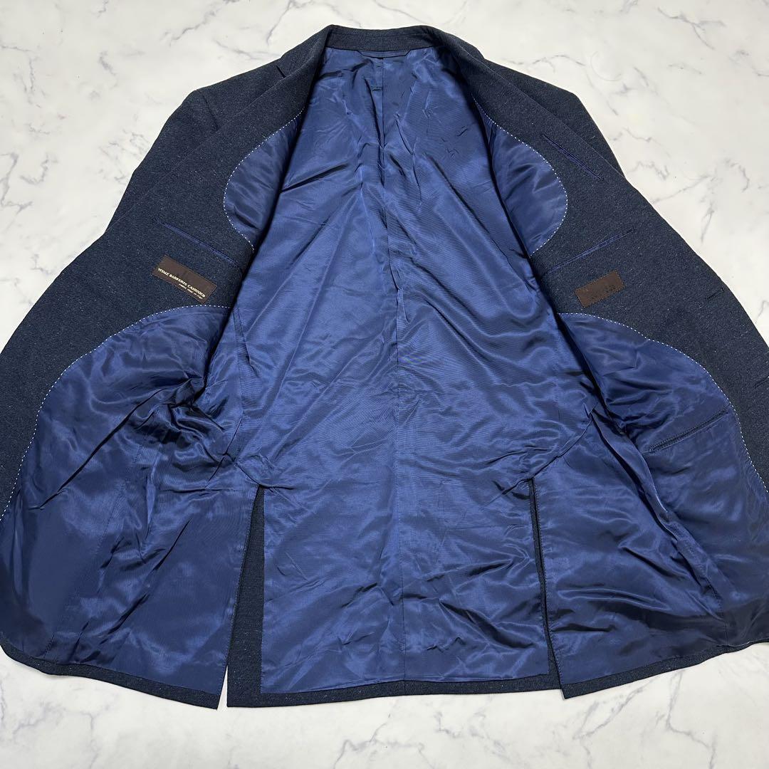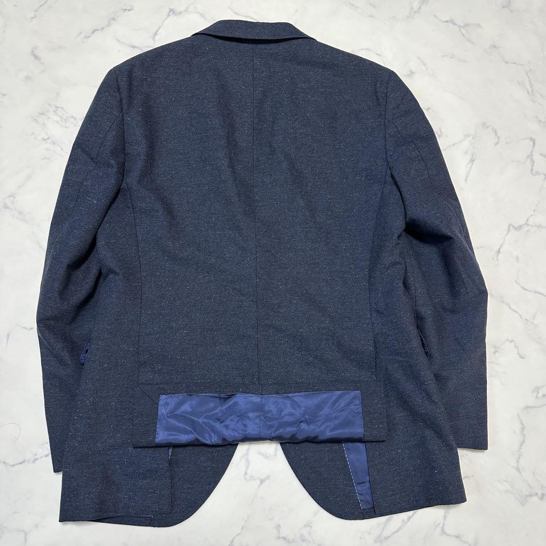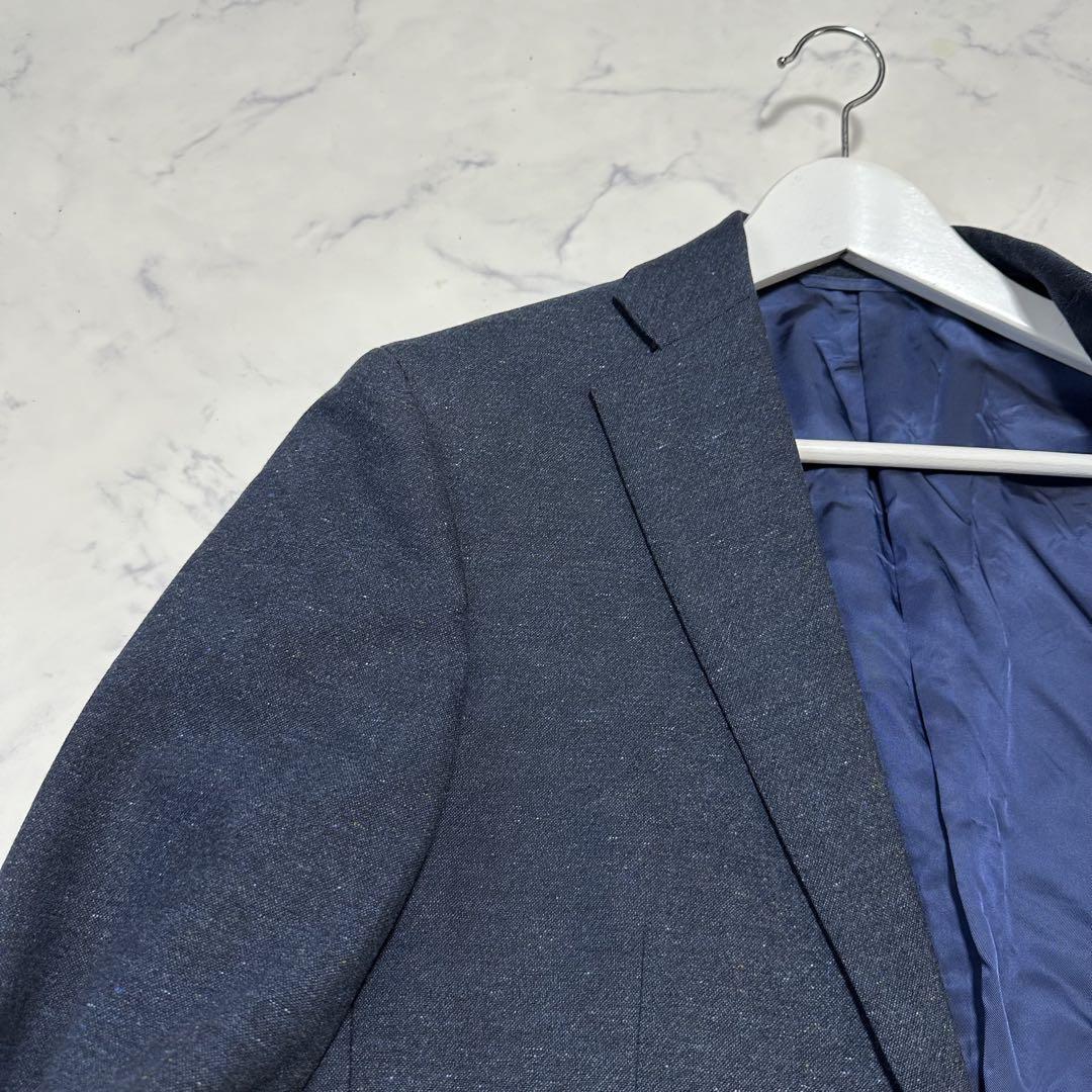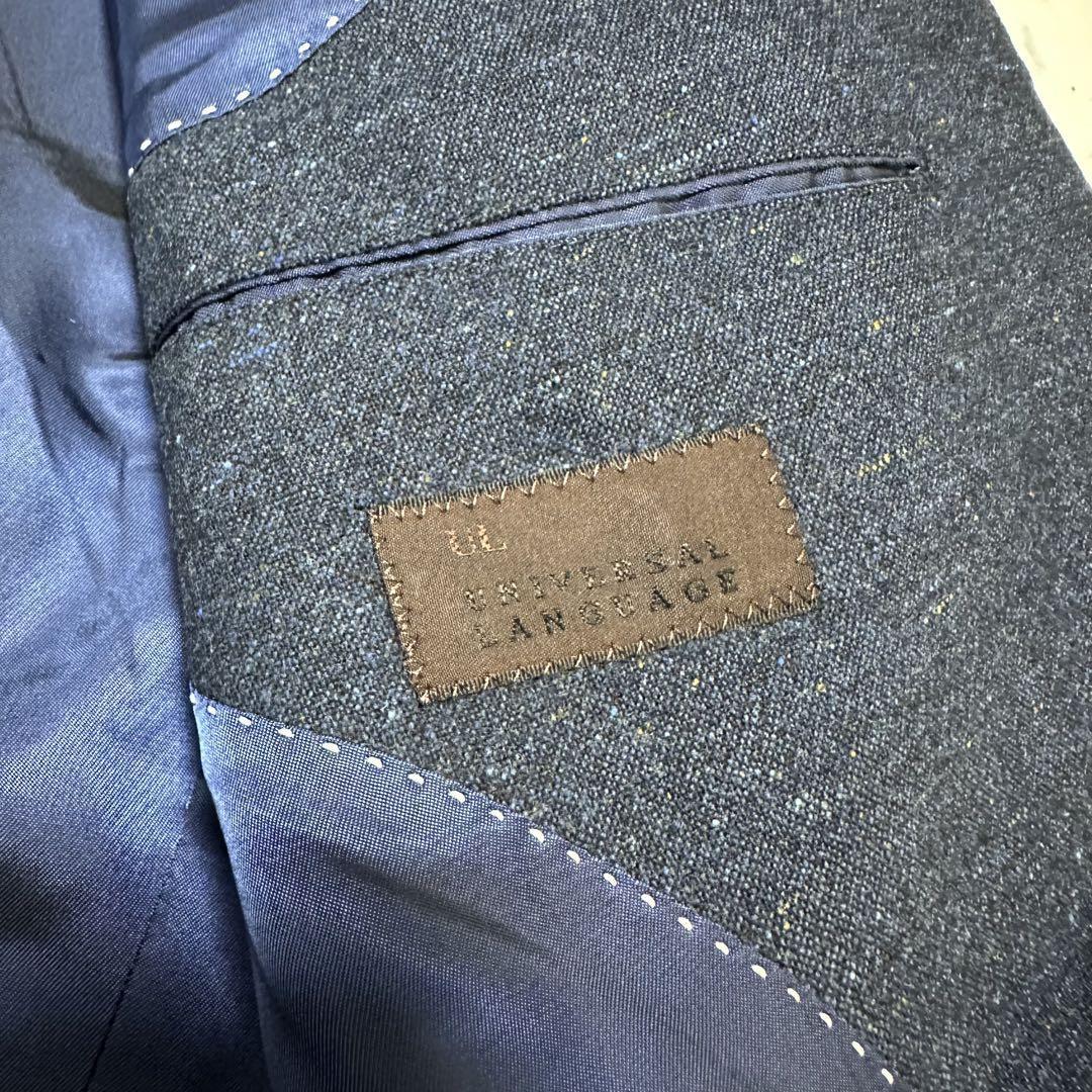 美品 ユニバーサルランゲージ カノニコ生地 シルク混ネイビージャケット A6程度 紺 サキソニー 総裏 裏地ブルー 本切羽