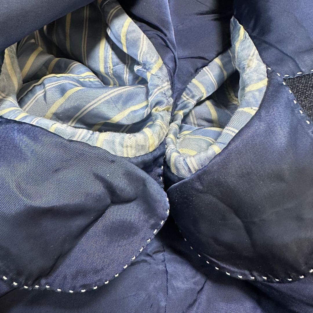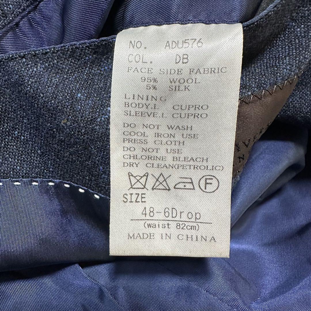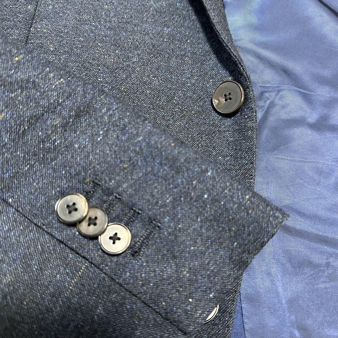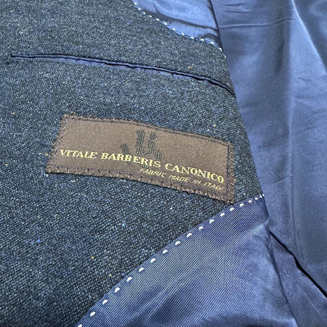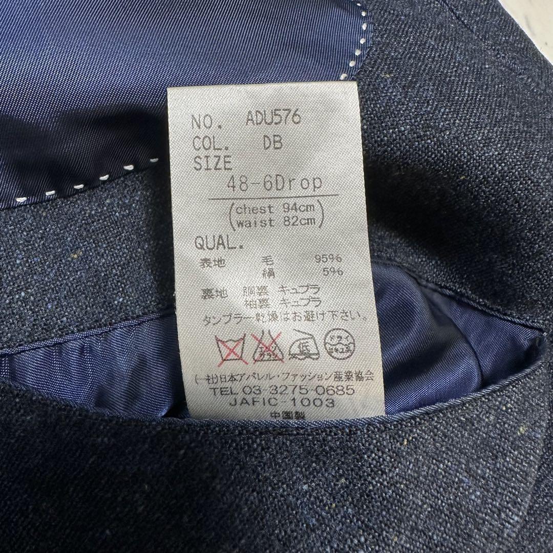 美品 ユニバーサルランゲージ カノニコ生地 シルク混ネイビージャケット A6程度 紺 サキソニー 総裏 裏地ブルー 本切羽