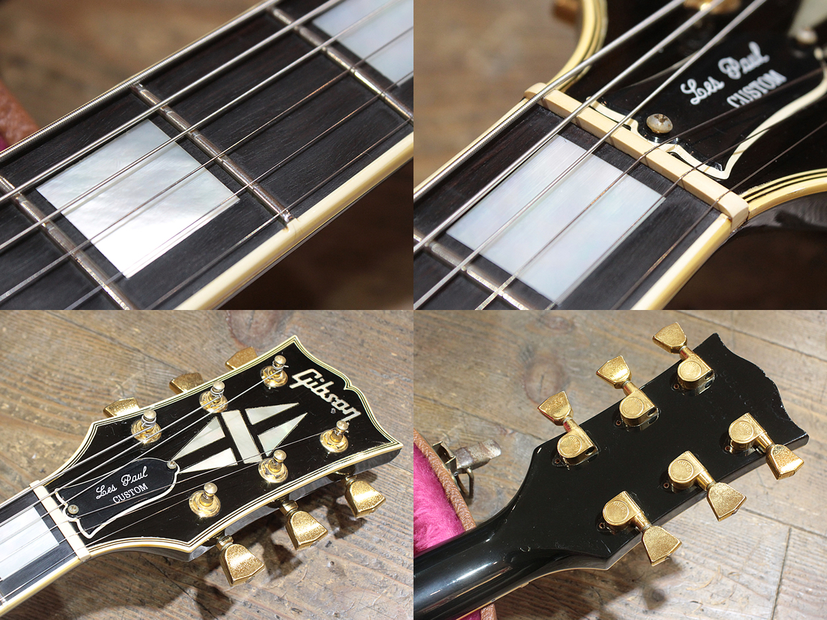 1990年製造。スタンダード(ヒスコレじゃない)のレスポールカスタムです。比較するにメイプルトップにスリムめなマホガニーネックが特徴でしょうか。重量は4.55kgとレスポールカスタムにしては程よい重さで、構えた際のバランスがいいような気がします。