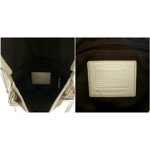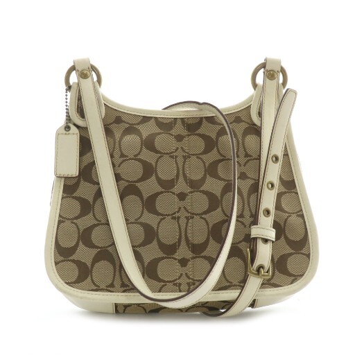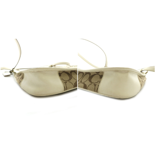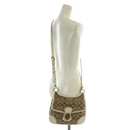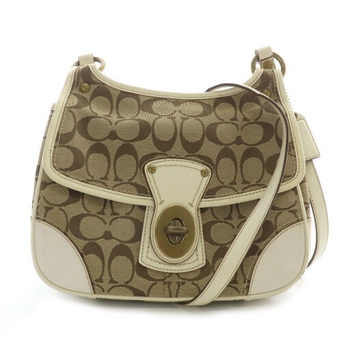 コーチ COACH ショルダーバッグ キャンバス レザー 皮革 シグネチャー ターンロック 白 ホワイト ベージュ 10567
