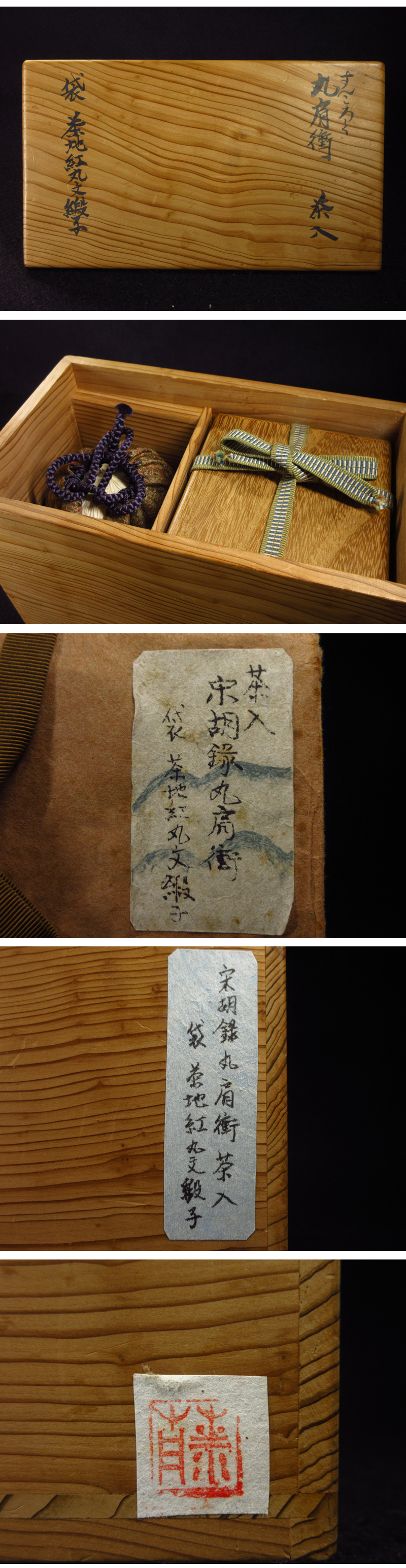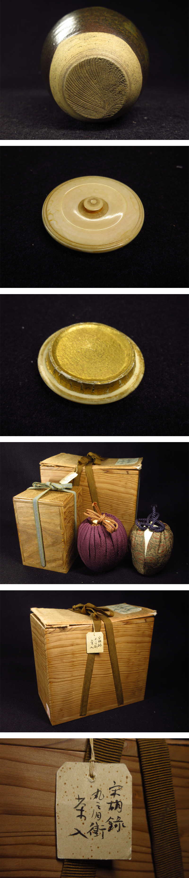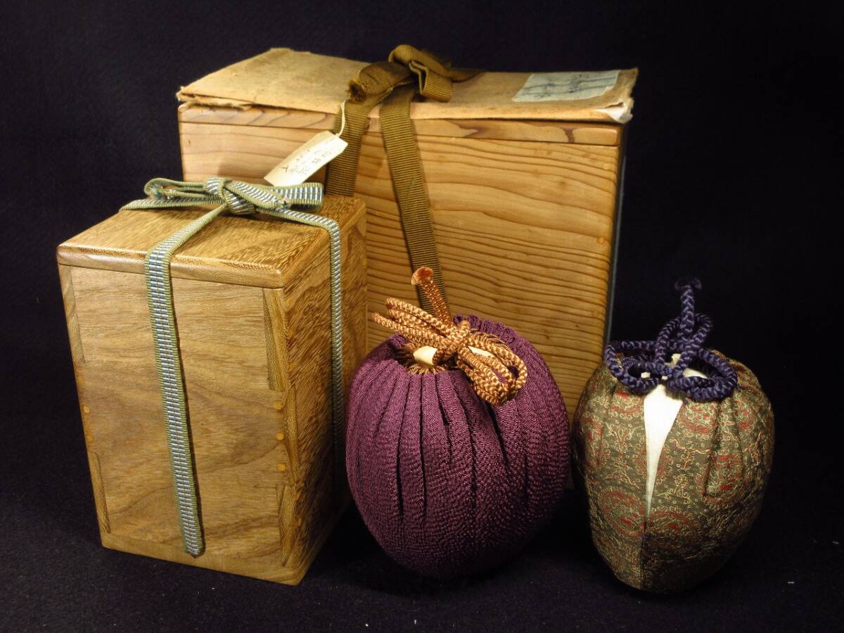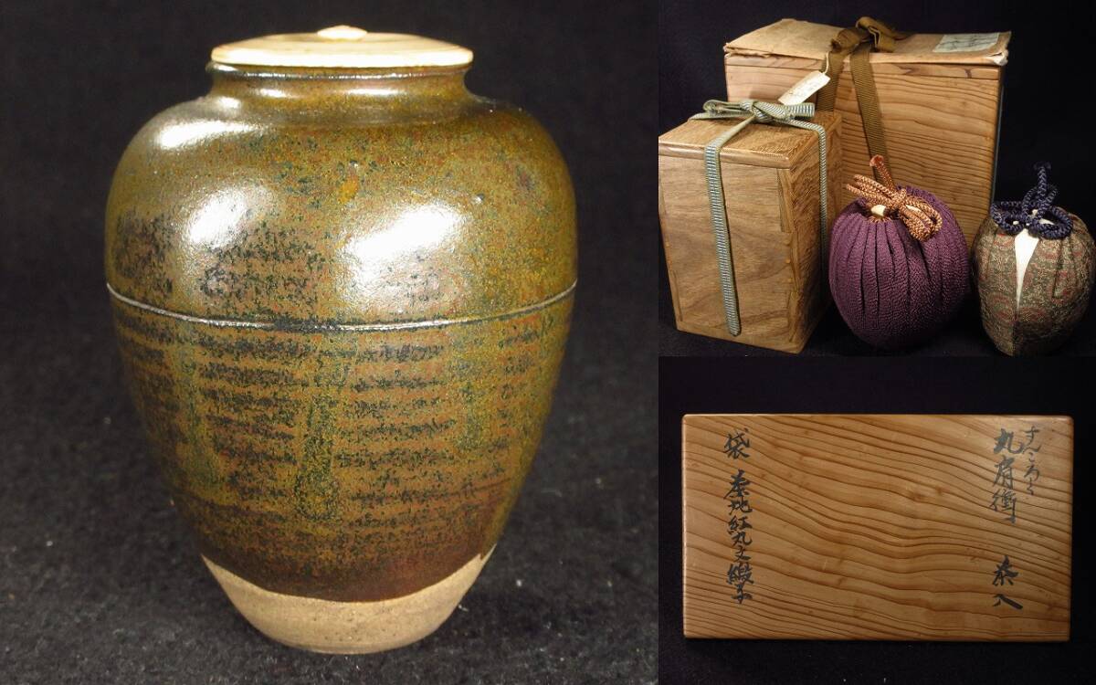 秀逸時代茶道具 16世紀頃 宋胡録 丸肩衝茶入 袋 茶地紅丸紋緞子 スンコロク すんころく 古美術 茶道具 本物保証