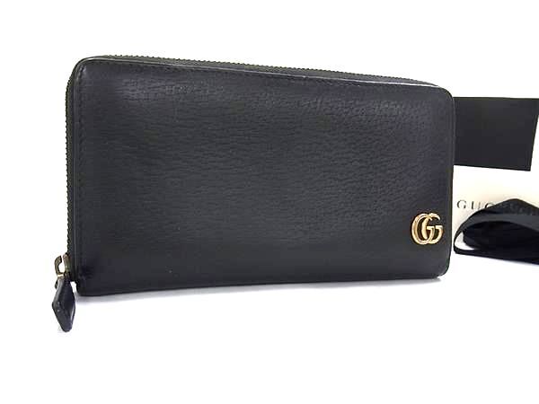1円 GUCCI グッチ 428736 2134 GGマーモント レザー ラウンドファスナー 長財布 ウォレット 札入れ 小銭入れ ブラック系 FN6423