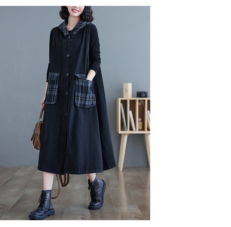 レディース トレンチコート ロングコート アウター ジャケット 春秋 フード付き カジュアル ゆったり 無地 ファッション 快適 ★2XLサイズ
