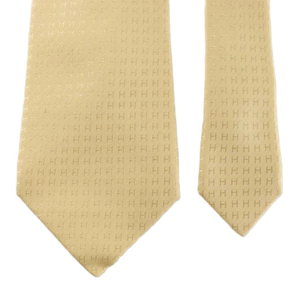 エルメス HERMES ネクタイ 絹 シルク ワイドタイ Hロゴ 総柄 クリーム色 /XZ ■OH ■GY19 メンズ