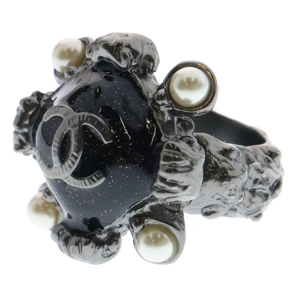 CHANEL シャネル CC Black Enamel Silver Tone Cocktail Ring CCロゴ ブラックエナメル シルバートーン リング A11 P ブラック/シルバー