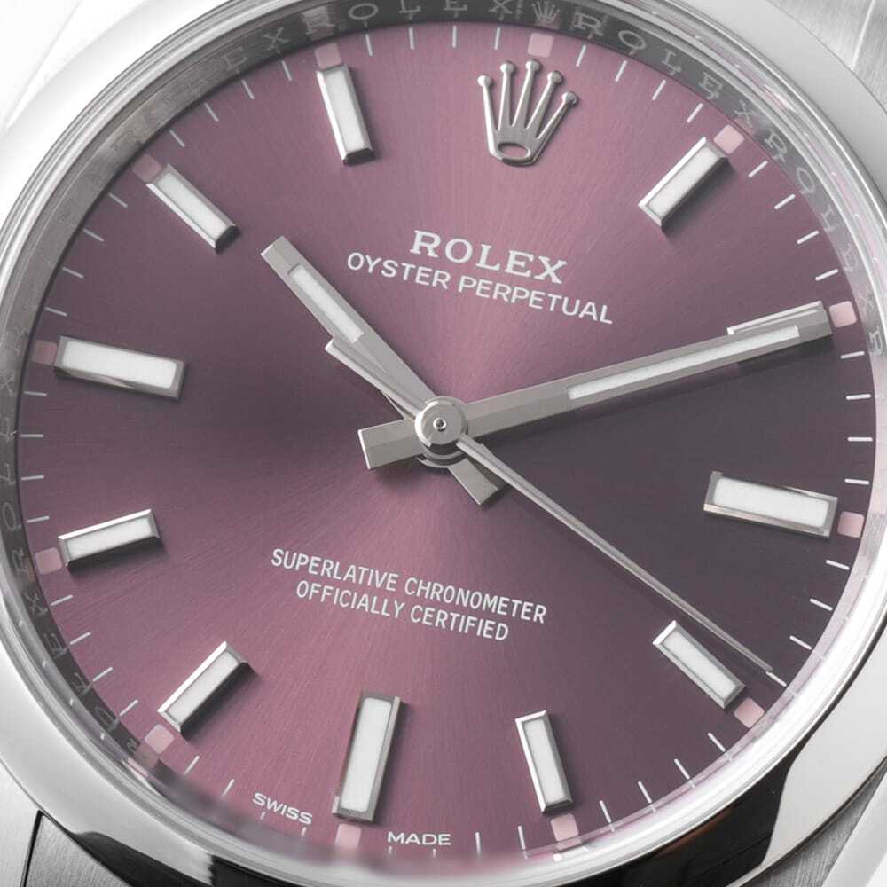 モデル情報 | 金属塊から削りだした防水性の高いオイスターケースと全回転式ローターを搭載したパーペチュアル機構を搭載したオイスターパーペチュアル。デイトジャストよりもリーズナブルでダイアルのバリエーションが豊富なため、年代を問わず幅広い層から人気を誇ります。 |