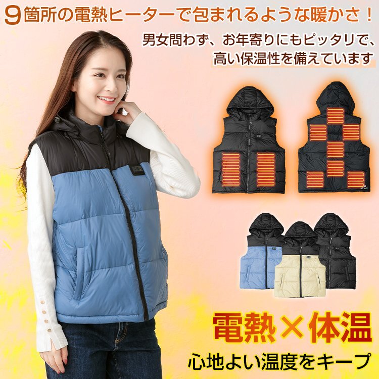 ヒーターベスト 電熱ベスト 9エリア発熱 ダウン80% 防寒 チョッキ メンズ レディース 中綿 男女兼用 あったか 秋 冬 通勤 通学 釣り ny449