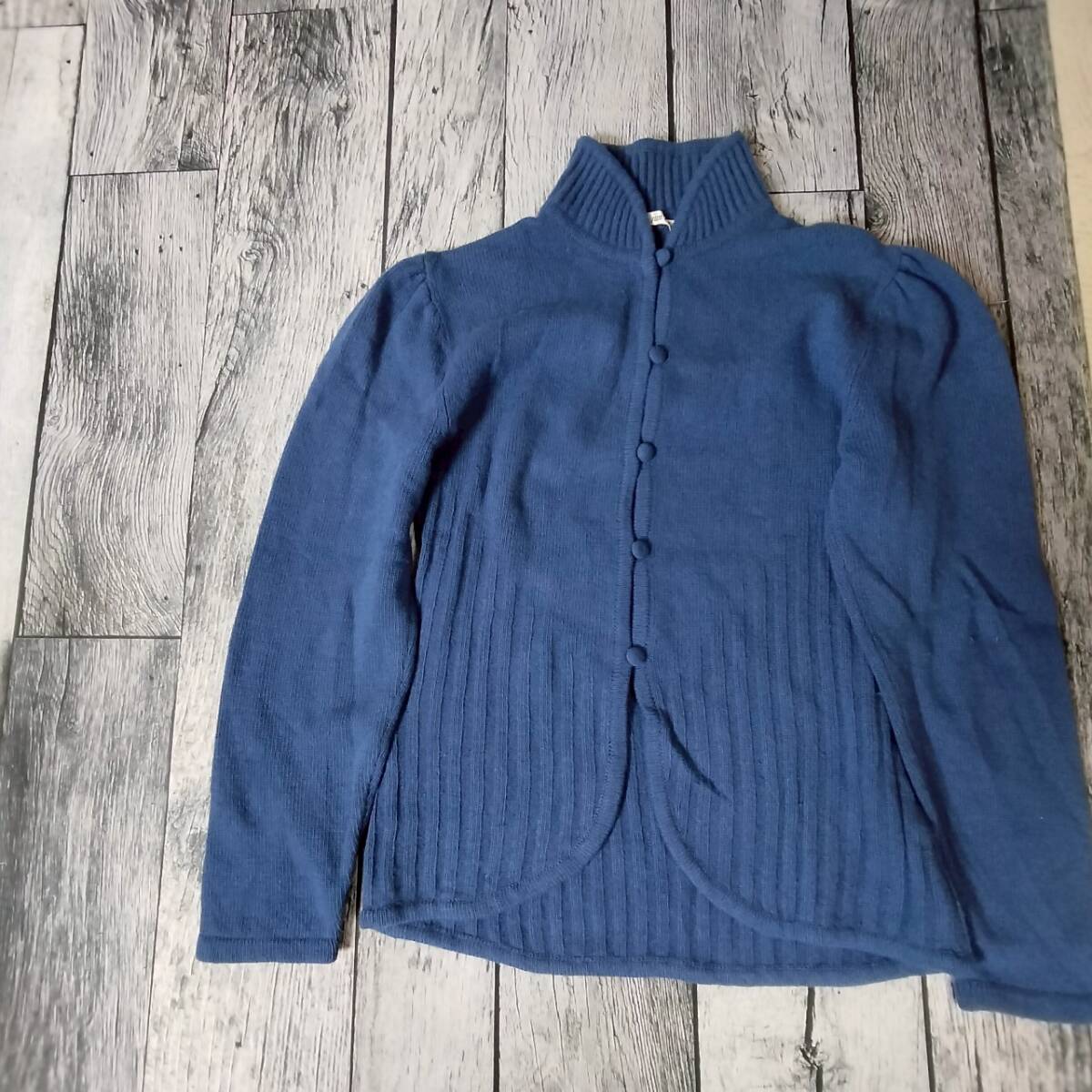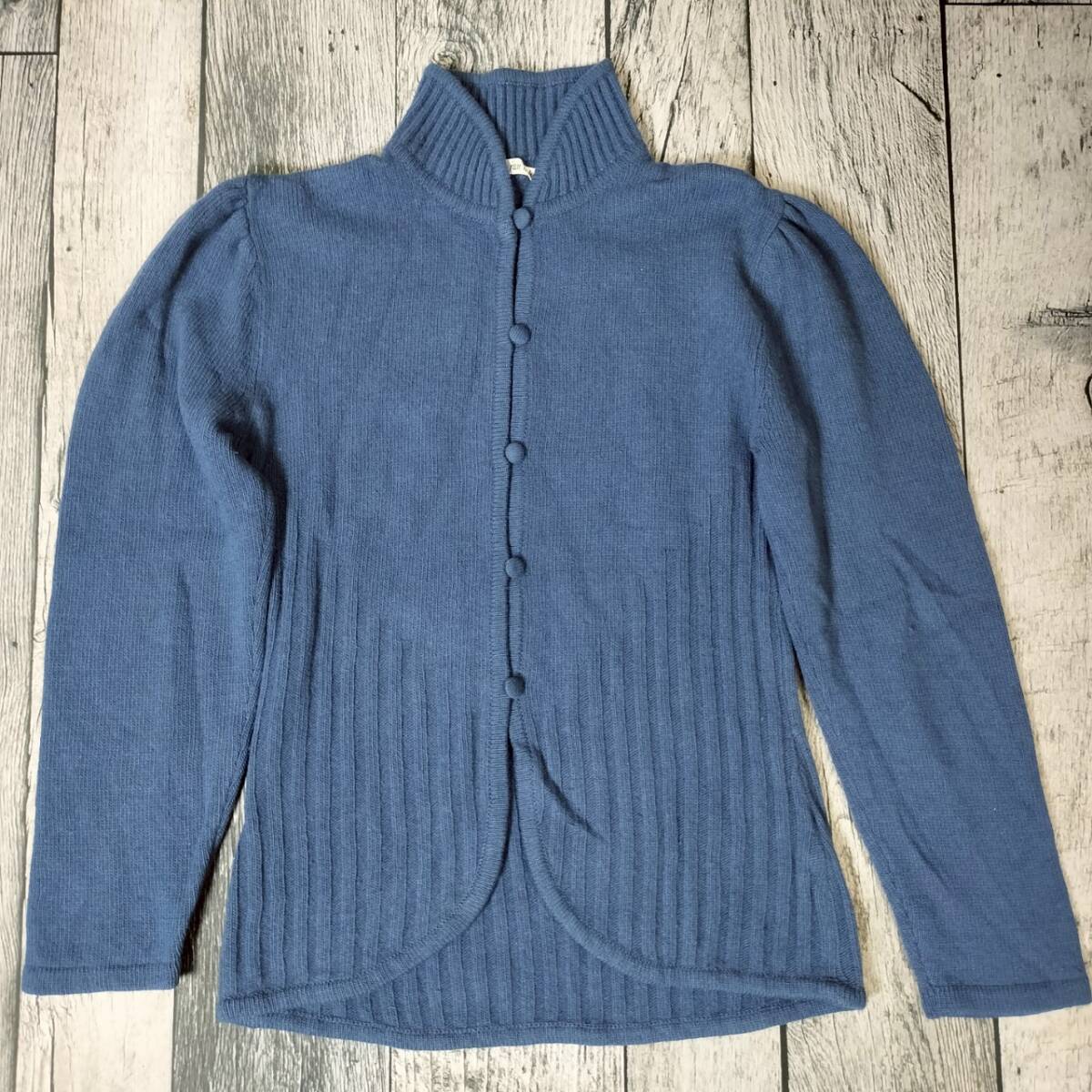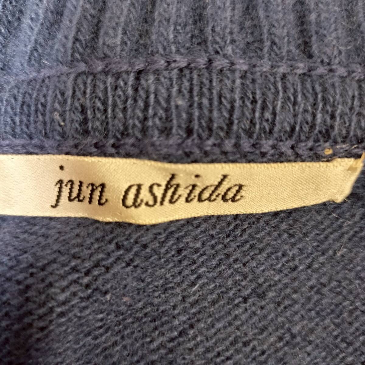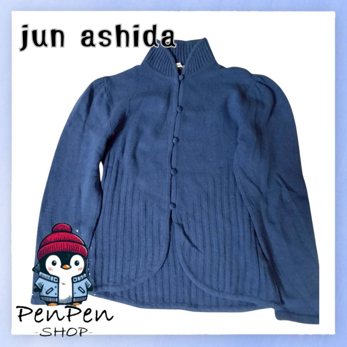 高級カシミヤ混 jun ashida ジュンアシダ レディース ニットカーディガン ネイビー 長袖 上質ウール Mサイズ