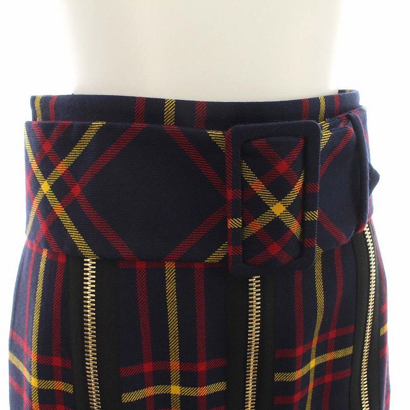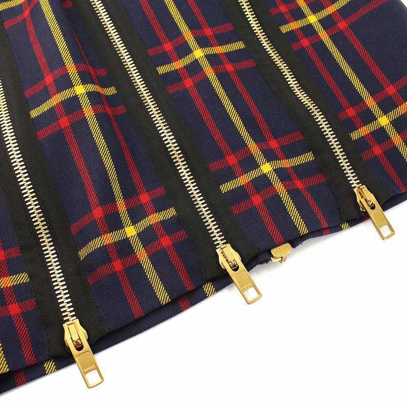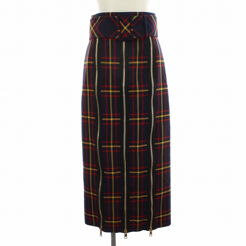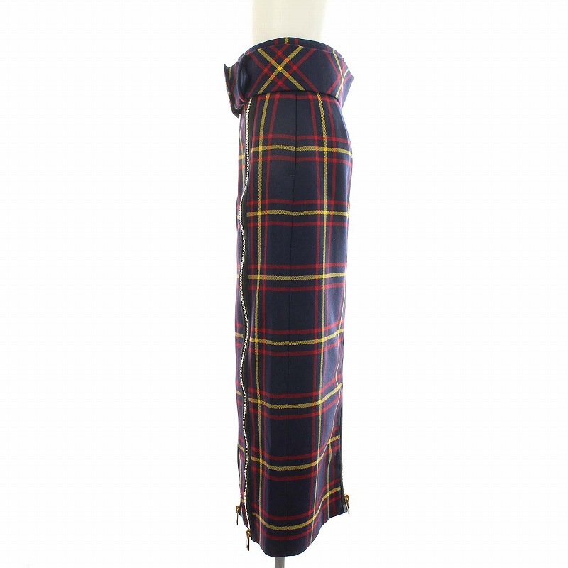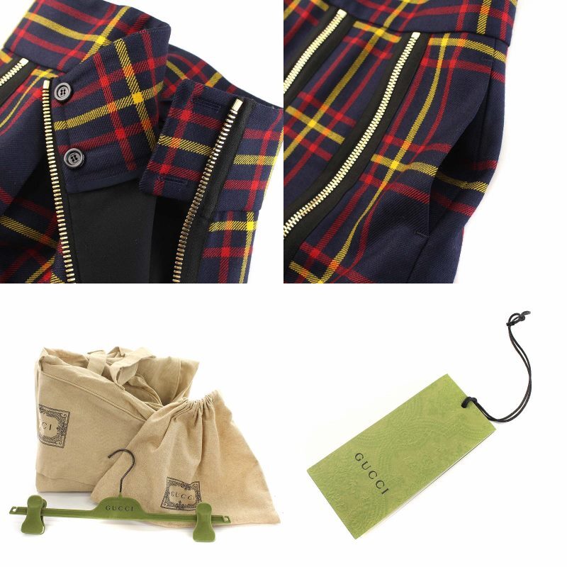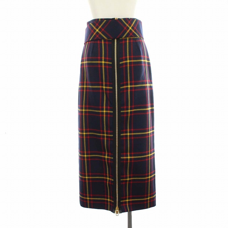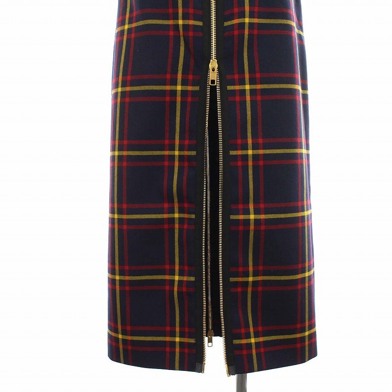 グッチ GUCCI 23SS タータンチェック ウールスカート タイト ハイウエスト ジップ 36 XS 紺 ネイビー 711750 /☆K レディース