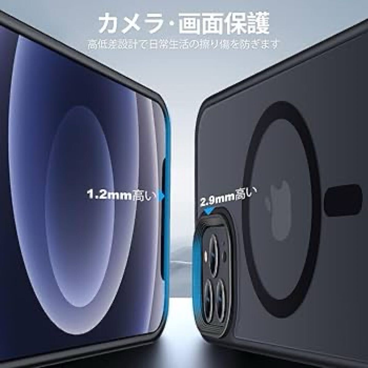 【米軍規格・MagSafe対応】Gtsoho iPhone 13 Pro Max 用 ケース 半透明 米軍規格 耐衝撃 マグネット搭載 マット感 黄ばみなし ストラップホール付き マグセーフ対応 ワイアレス充電対応 マットブラック