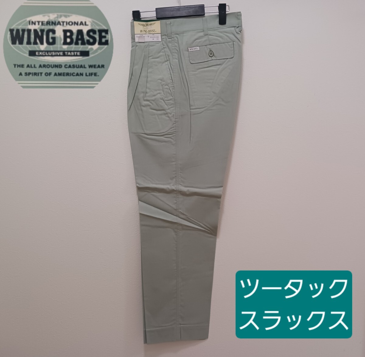 5395 WING BASE 5703|ツータックスラックス|グリーン系|W91㎝|春夏|新品未使用|綿ポリ混紡|作業ズボン|ミリタリー|ツータックパンツ
