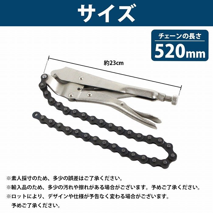商 品 説 明チェーンの取り付け位置を変えることにより、様々なサイズの管に対応できるチェーンレンチです。