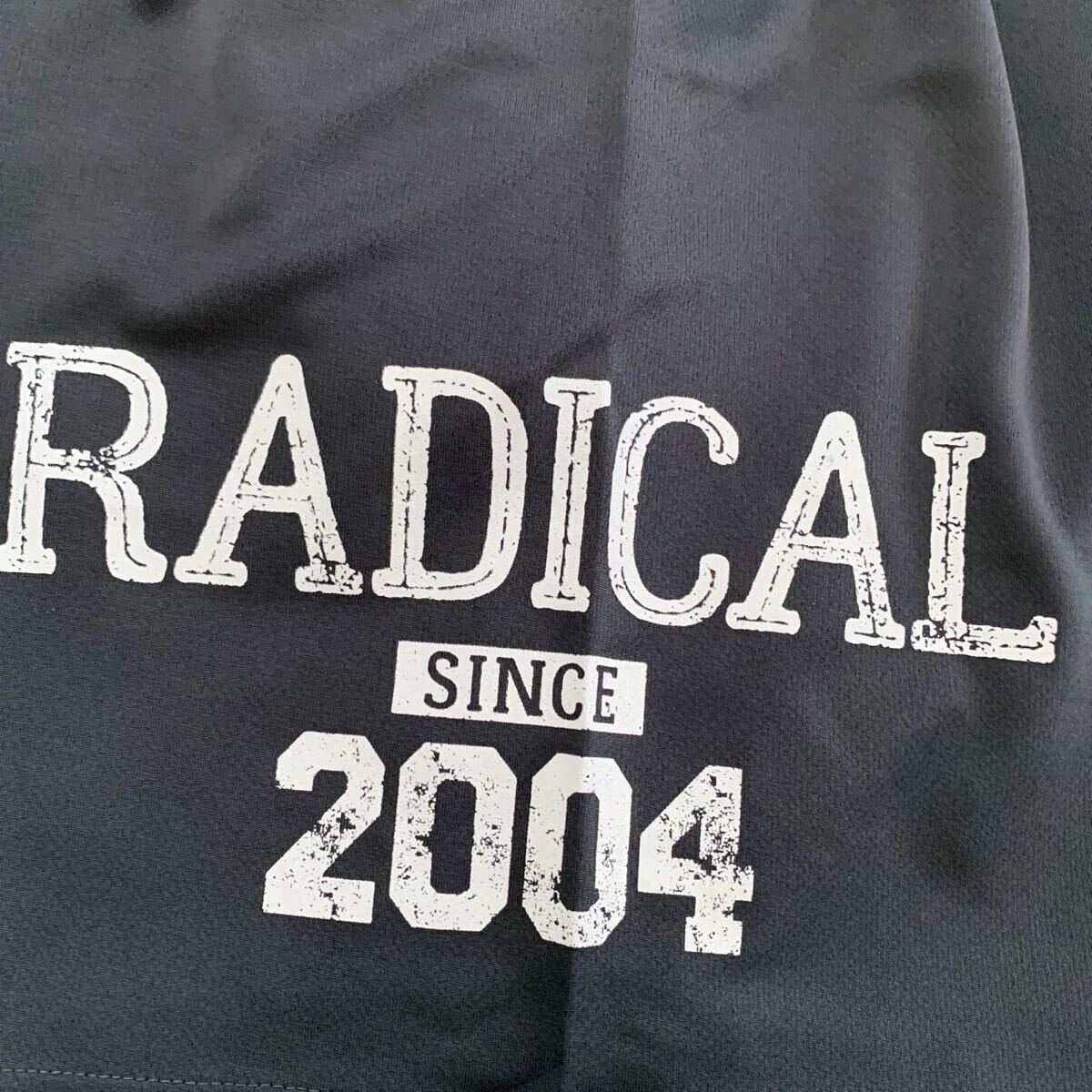 ダメージ調の白いロゴと大きなラディカルマークが映えますね。