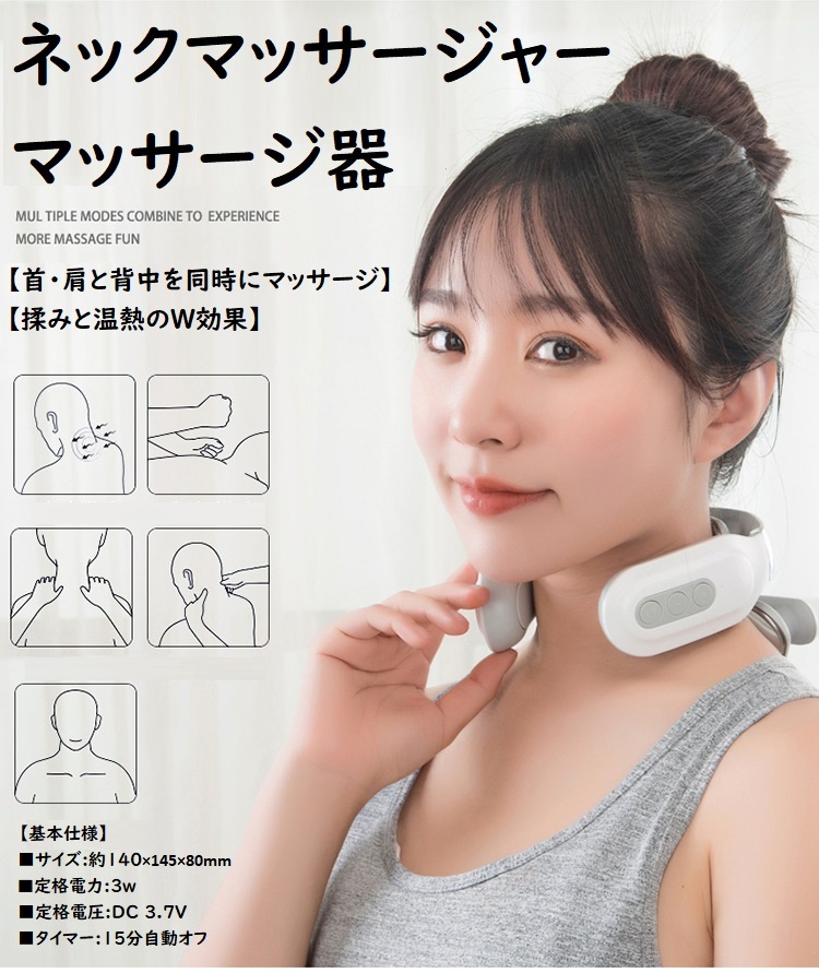 上質ネックマッサージャーマッサージ器 温熱 肩こり 首コードレス 振動TENSパルス 4個電極シート 健康グッズ 多機能 解消グッズ プレゼント