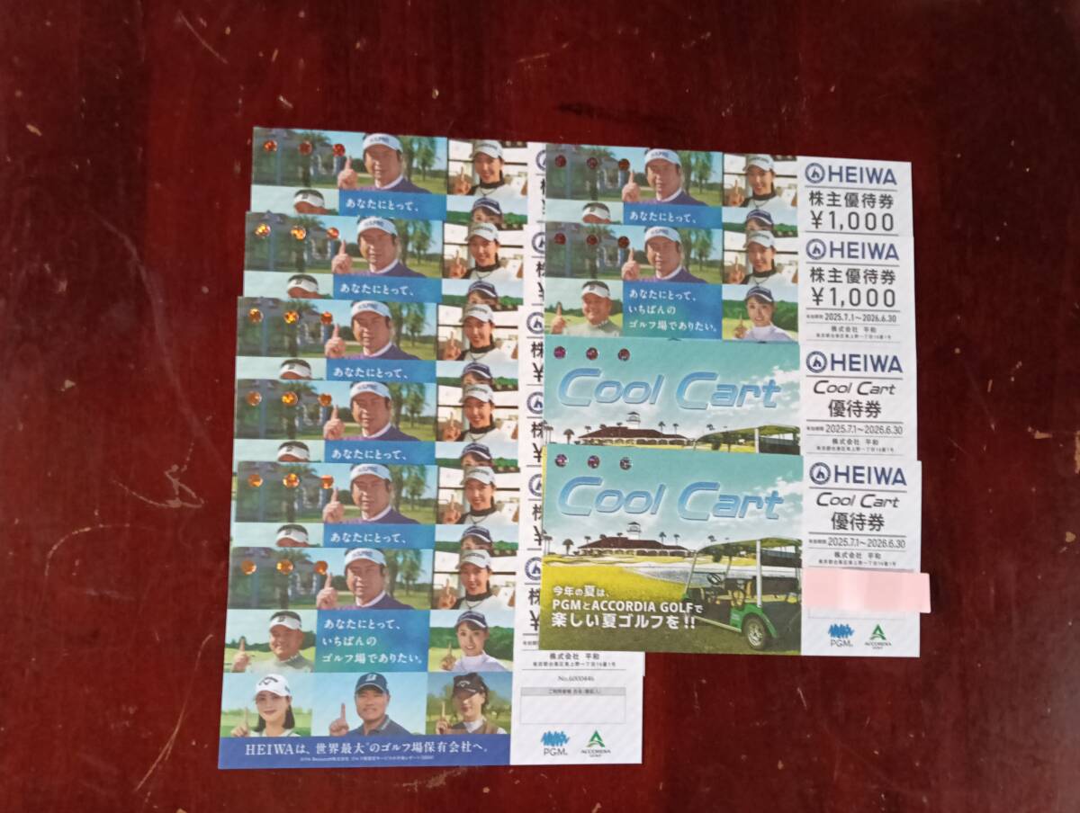 平和HEIWA株主優待券枚(2026年6月30日まで)クールカート券2枚((2026年6月30日まで)合計10枚です。定形郵便でしたら送料無料です。