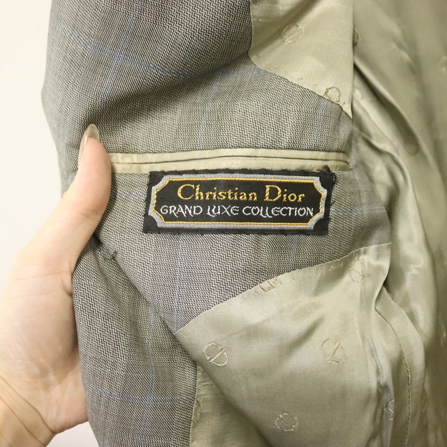 U36 80sビンテージ クリスチャンディオール 長袖テーラードジャケット■1980年代製 Sサイズくらい グレー グレンチェック アメカジ 90s