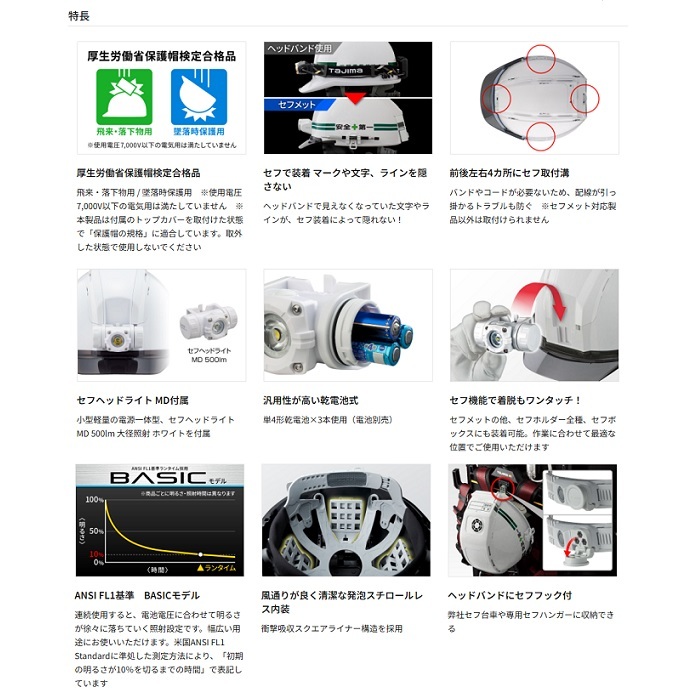 タジマ(TJMデザイン)製のセフメット(ヘルメット) べ-シックセット MD ホワイト シールド付の HSWSB2です。