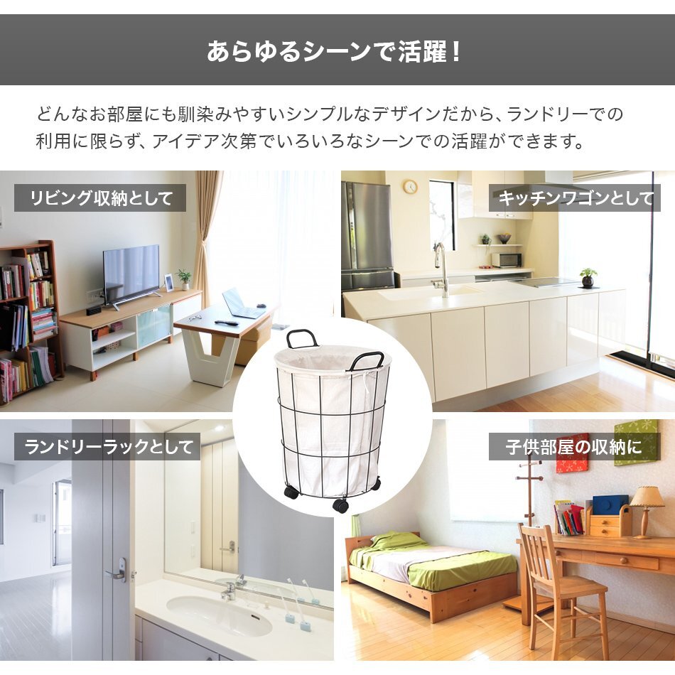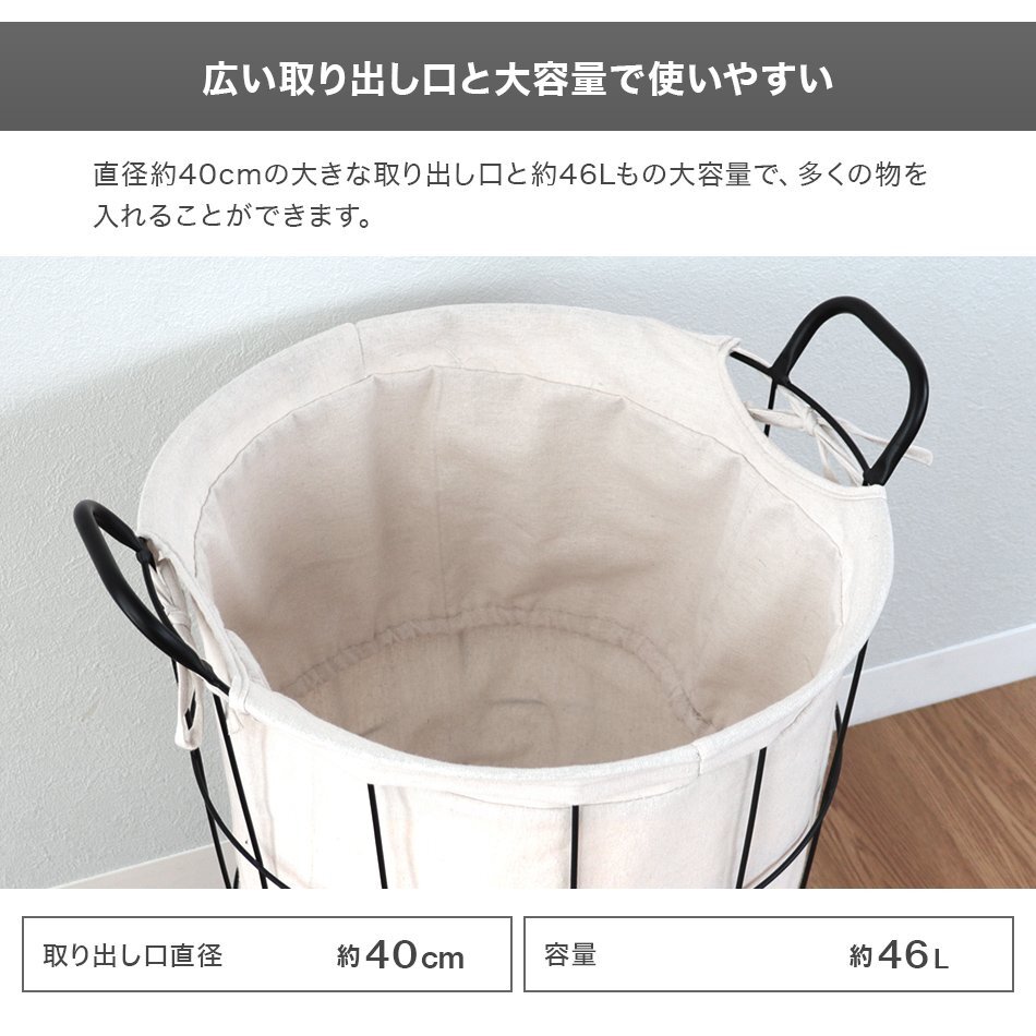 直径約40cmの大きな取り出し口と約46Lの大容量で、 多くのものを収納できます。 ウォッシャブル対応のシンプルな布地カバーはきんちゃく仕様になっているので、 中に入れたものを隠すことができます。 通気性が良く丈夫なフレームは、持ち手・キャスター付きなので、 ラックごとの移動もスムーズです。 ランドリー以外にキッチンの食品ストッカー、リビングの雑貨入れ、おもちゃ収納にも使えます! 【商品仕様】 ・カラー:ホワイト ・サイズ:(約)上部直径40×下部直径32×高さ55cm ・重量:(約)1.1kg ・容量:(約)46L ・耐荷重:(約)20kg ・素材: フレーム:スチール(粉体塗装) ファブリック:コットン60%、ポリエステル40% 【注意事項】 ・スチール製の為、浴室ではご使用いただけません。 |