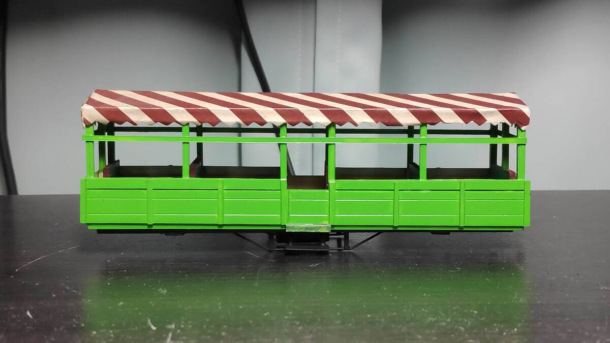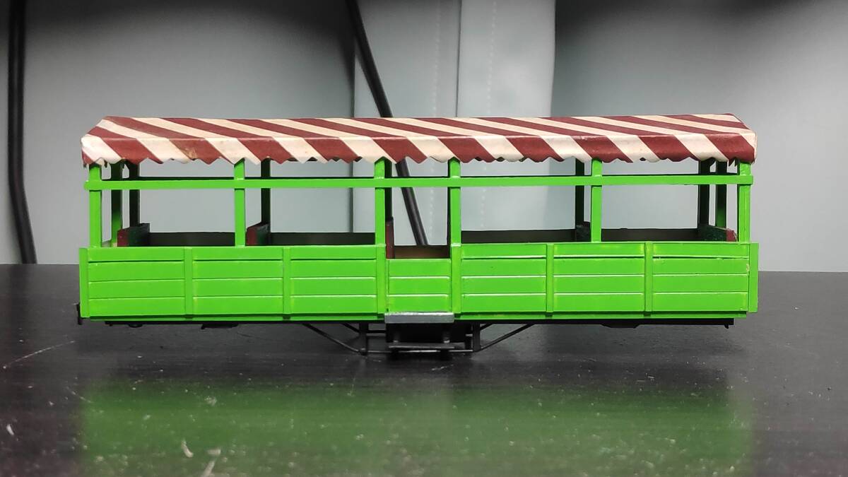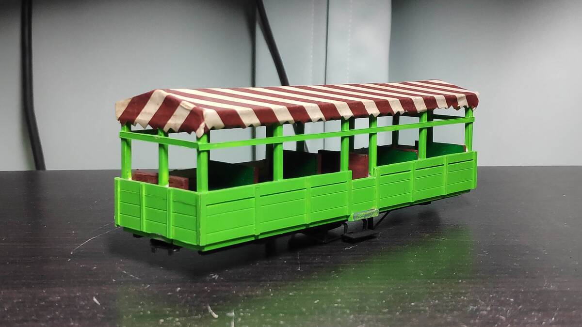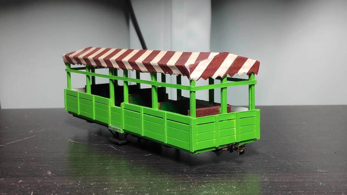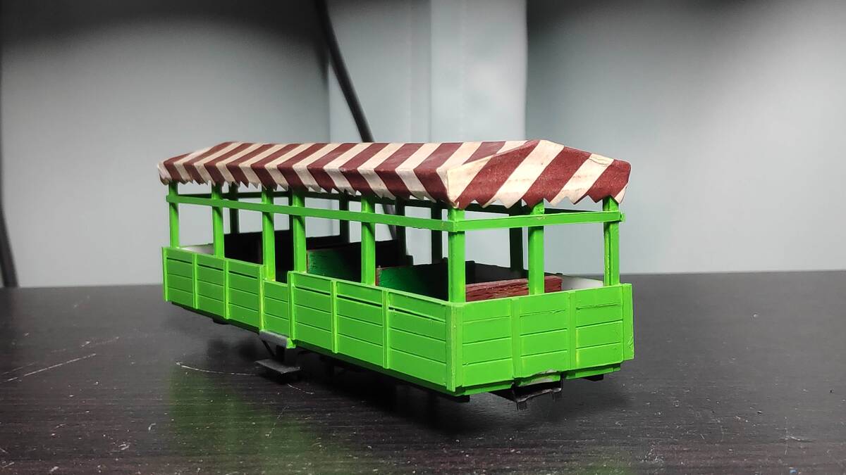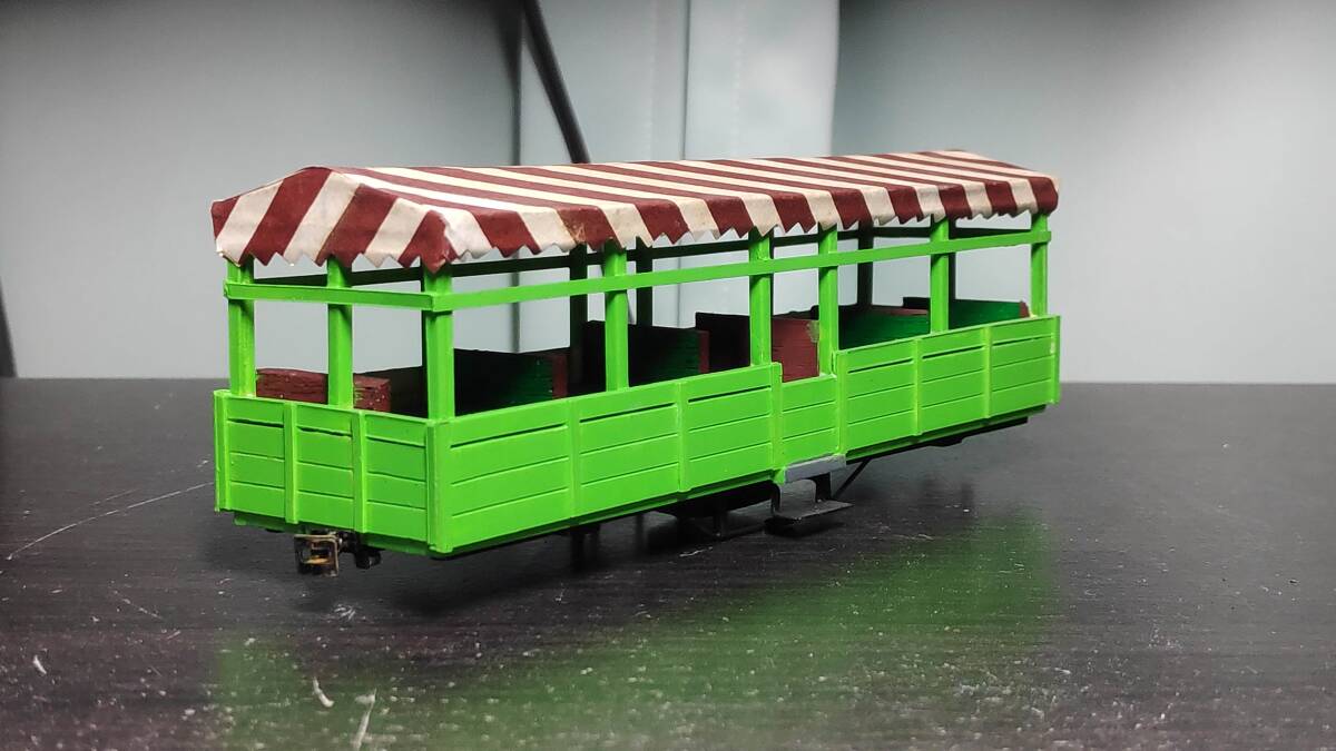 フリーランスと思われるオープン客車です。プラ材主体の自作車両だと思われます