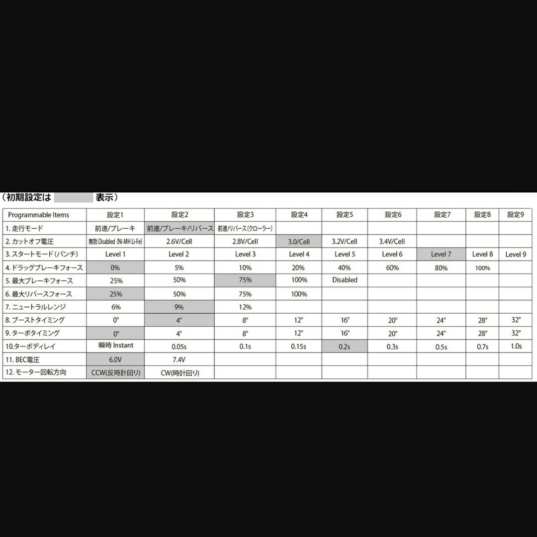 (注意:ブーストおよびターボ・タイミングは3Sバッテリーでは使用できません。)