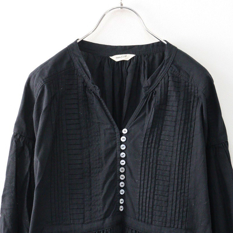 2024 スタジオクリップ studio CLIP ピンタック フレアワンピース F‖ブラック ドレス ロング 長袖 Vネック【2400014622232】